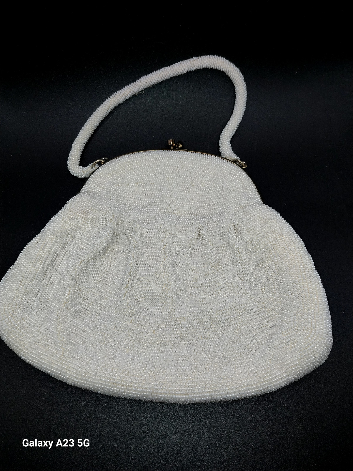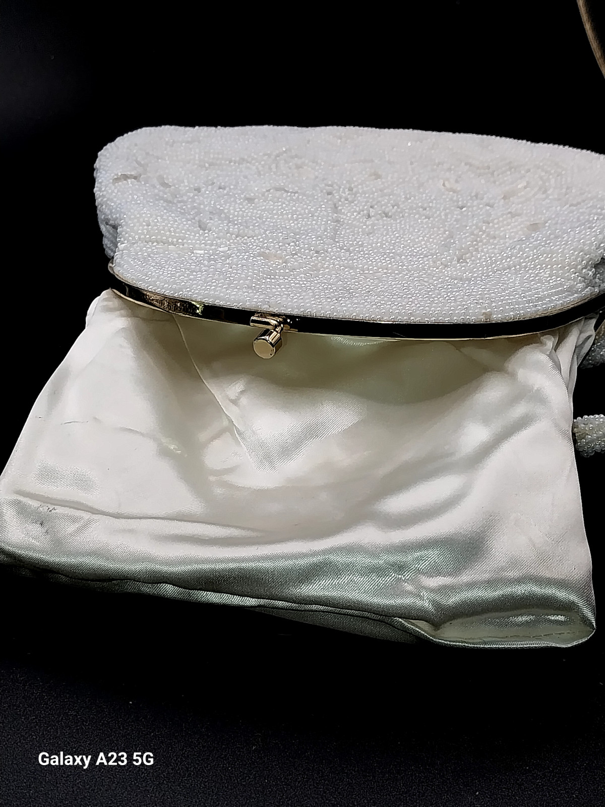 Vintage Beaded Hand bag Evening bag White Hand Made in Japan