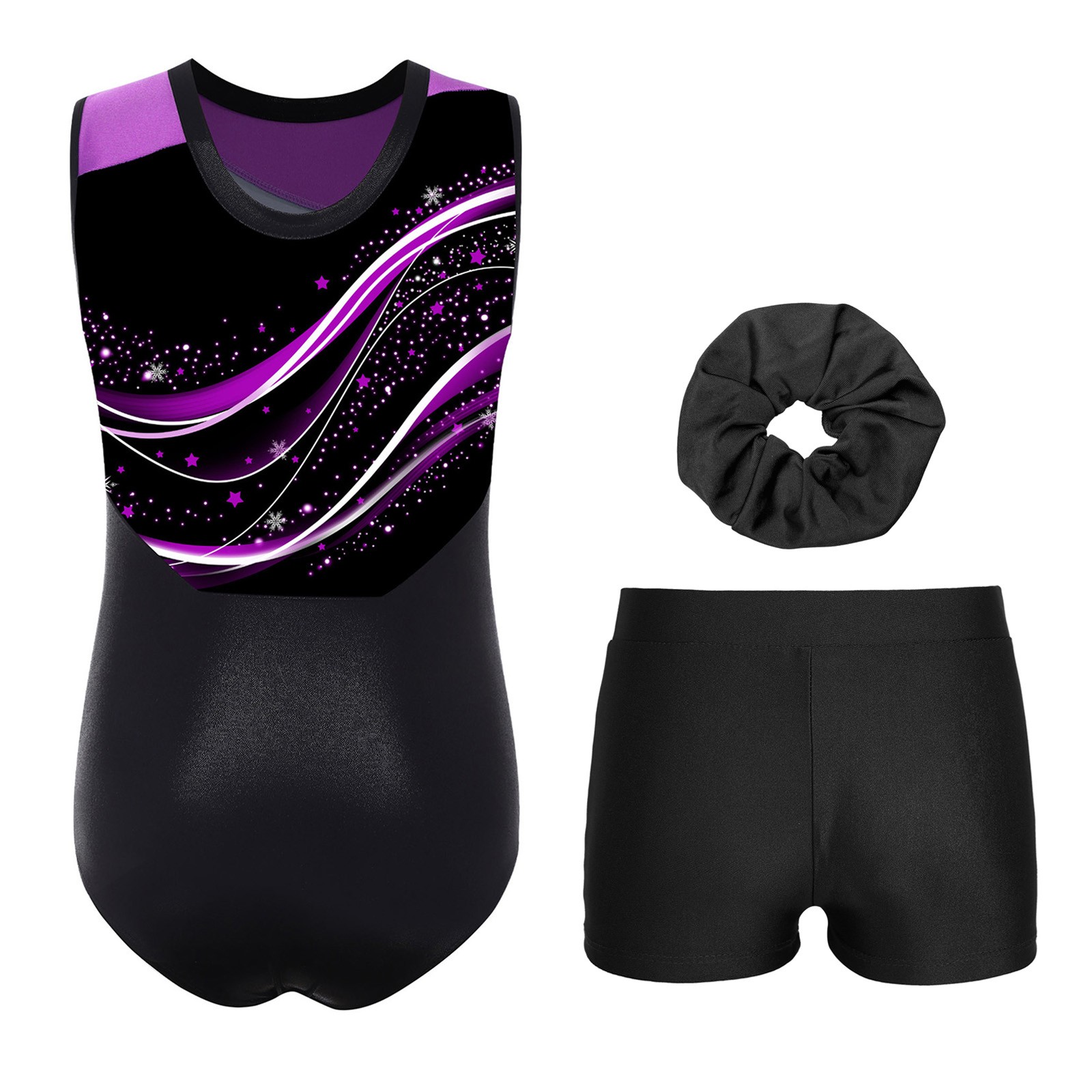 Kids Girls Dancewear Figure Skating Set Bodysuit Outfit Training Stylish Print