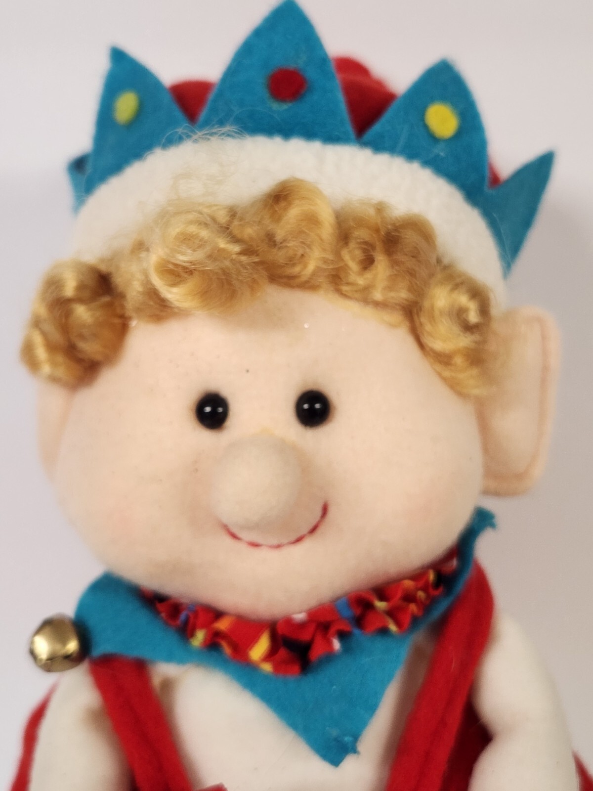 как выглядит Christmas Elf Shelf Sitter With Gift Boy/Girl Plush Felt 2009 Set Of 2 Read фото