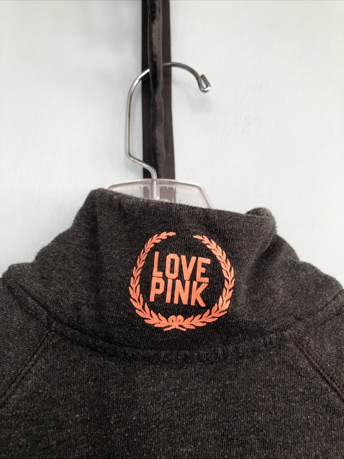 как выглядит Victoria Secret PINK Full Zip Track Jacket Gray/Neon Orange Size Small Spell Out фото