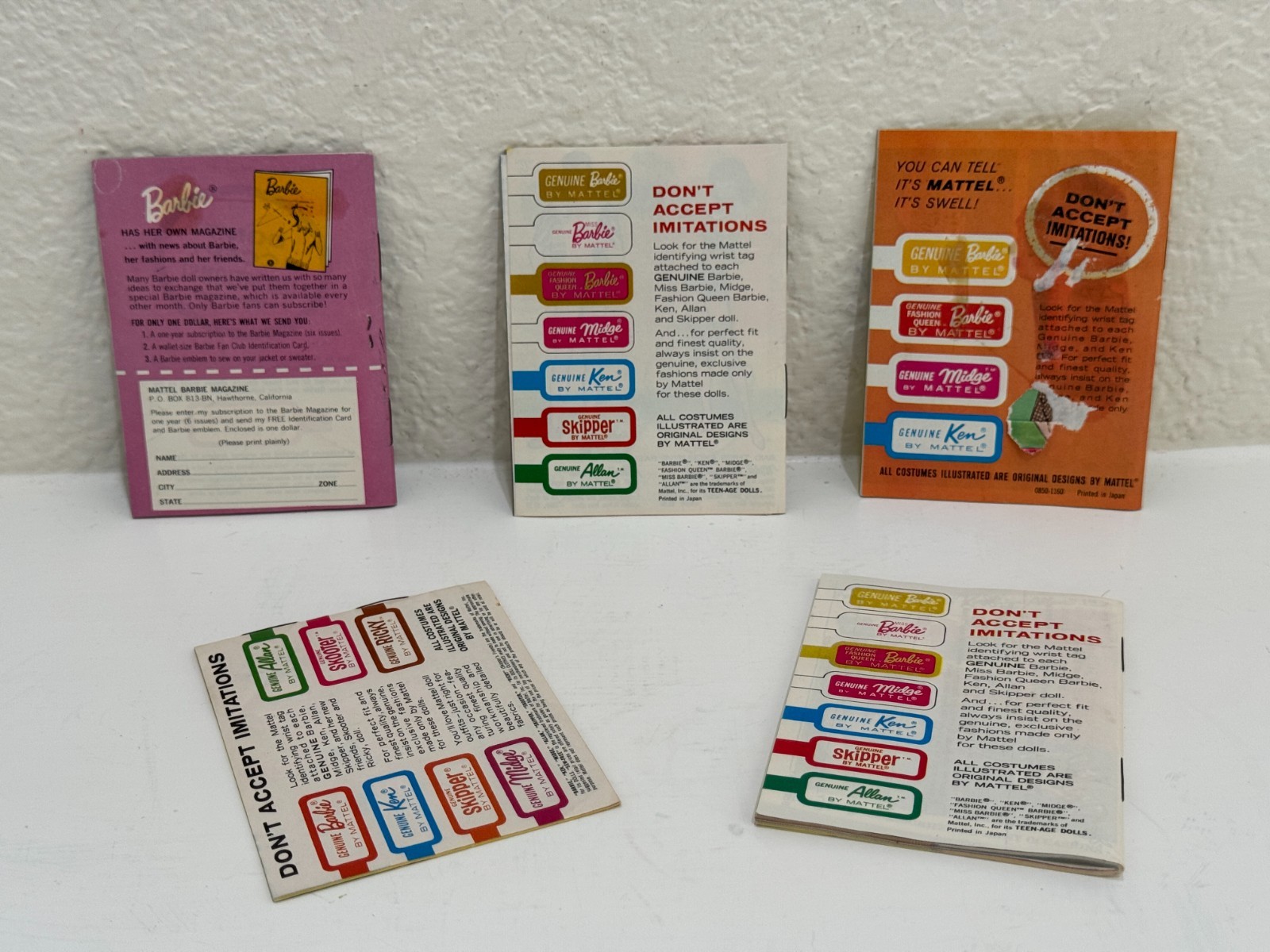 Lot of 5 Vintage 1960s Mattel Barbie/Skipper Fashion Booklet, Early Mini Catalog