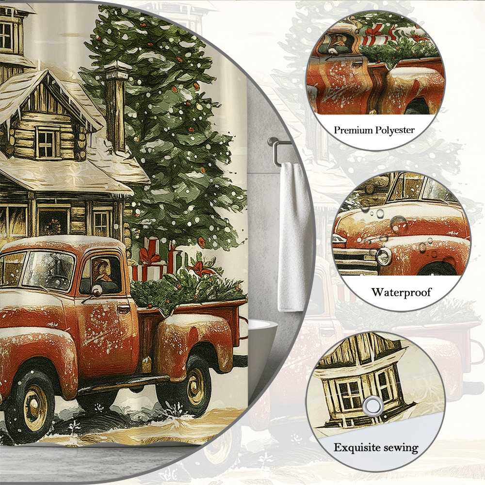 Vintage Red Truck Cabin Christmas Tree Snowman Rustic Winter Holiday bath decor