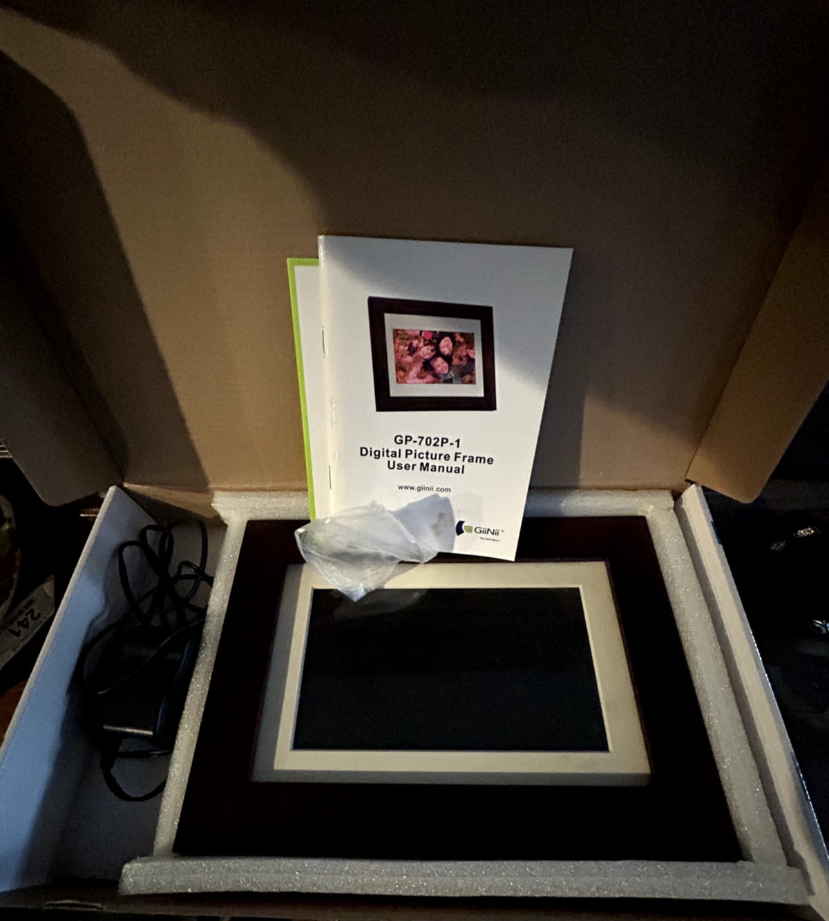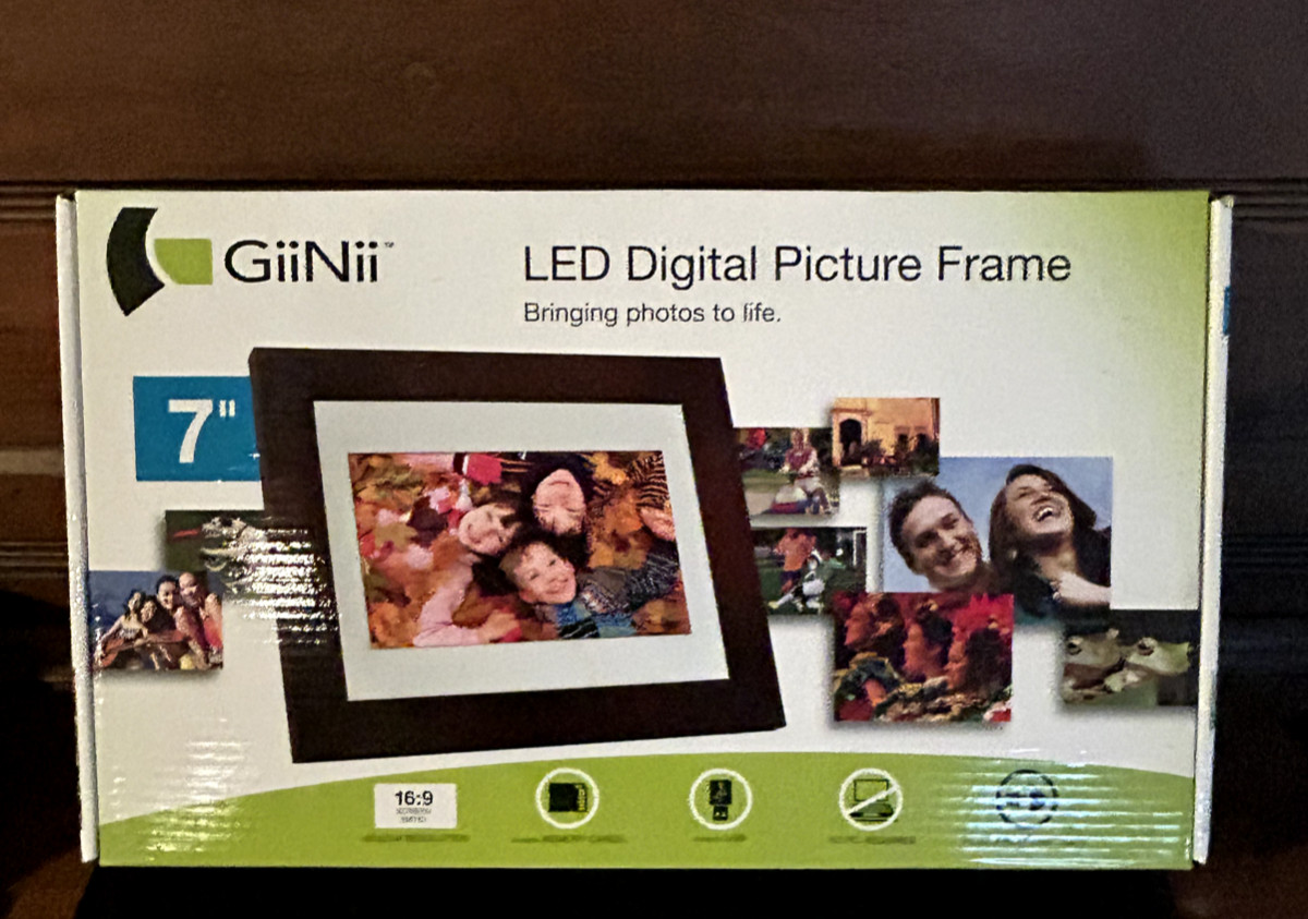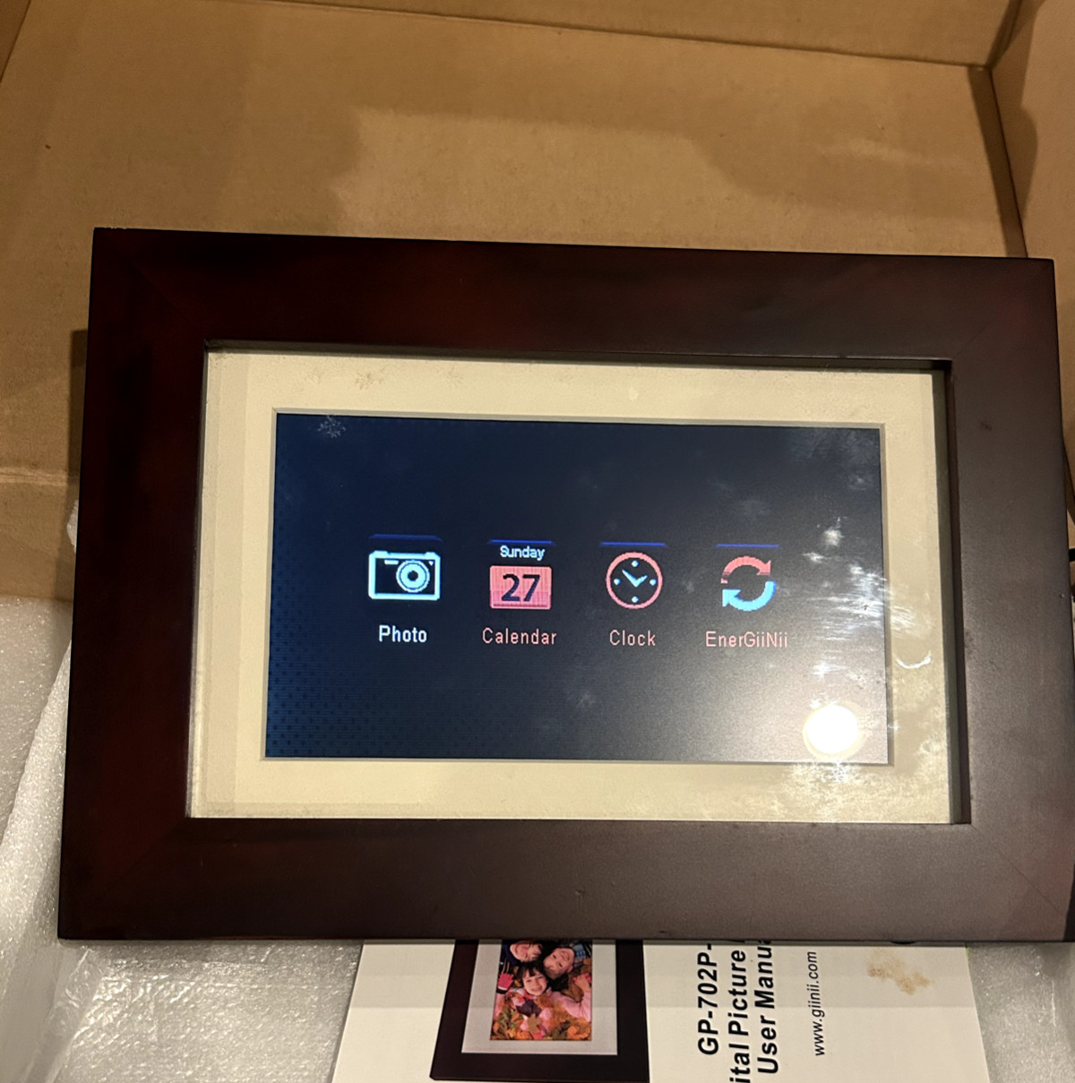как выглядит GiiNii 7" LED Digital Picture Photo Frame Clock Calendar Brown GT-702P фото