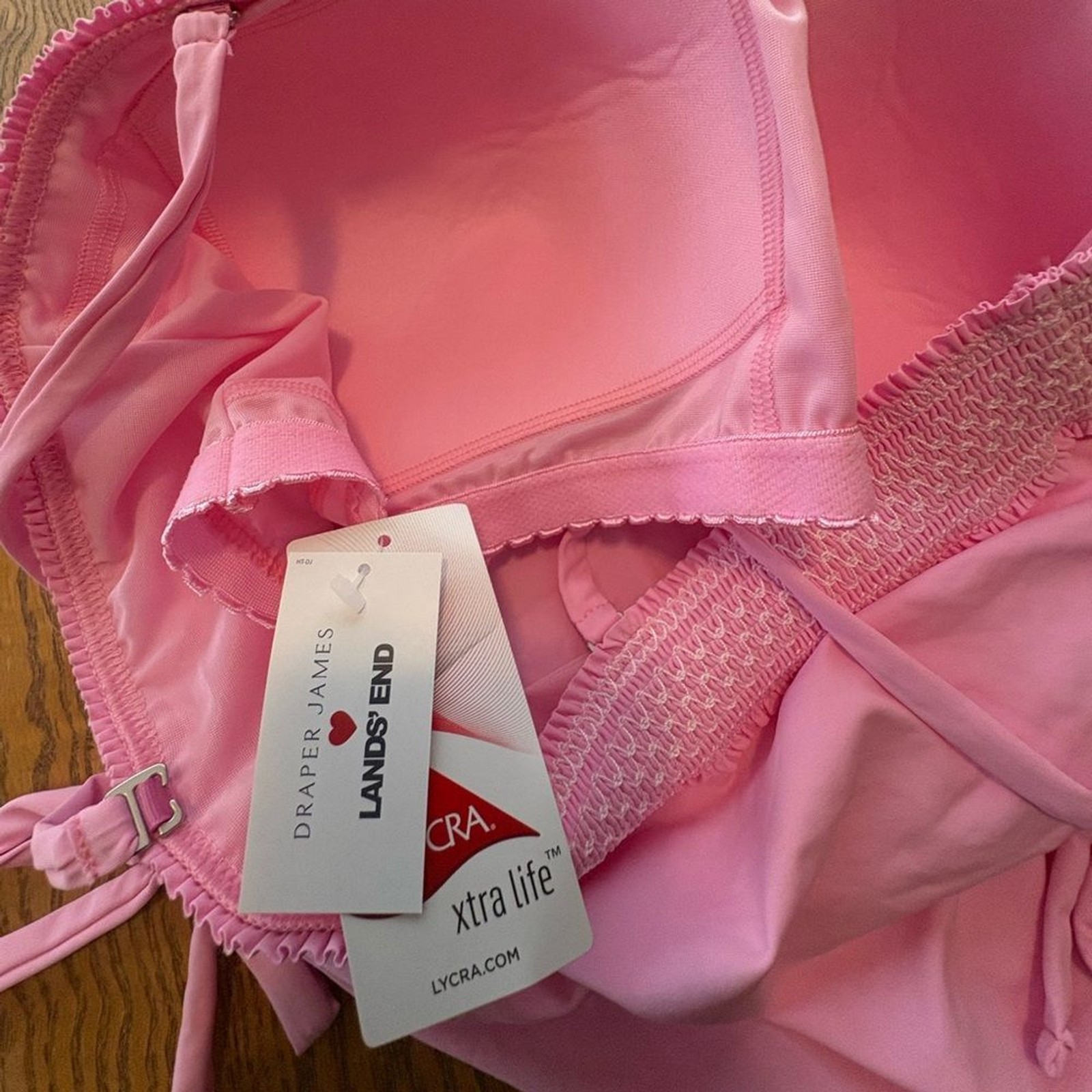 как выглядит Draper James x Lands End Tankini Swimsuit Top Womens Pink Smocked Tie NWT 16 фото