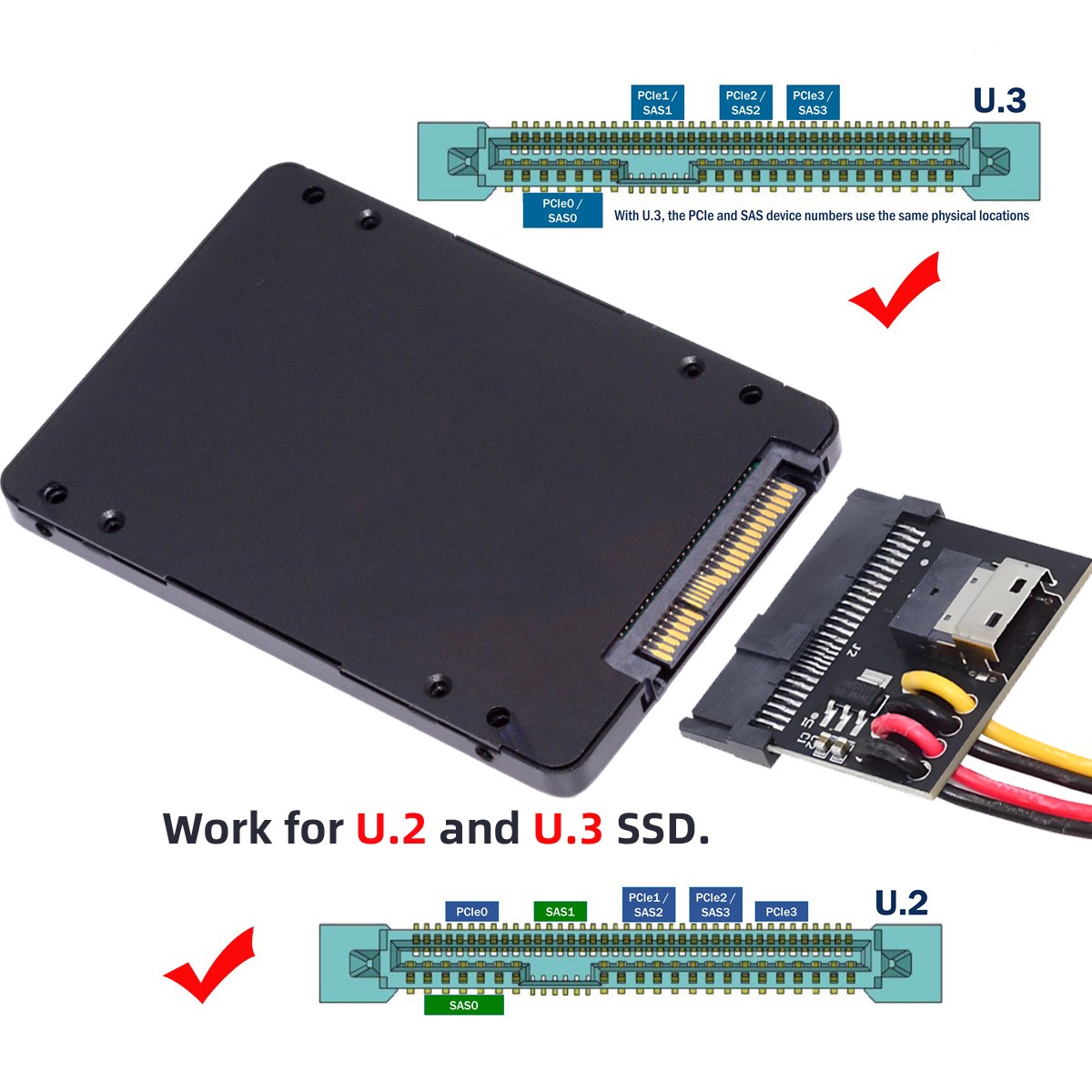 U.2 U.3 SFF-8639 SSD to Slimline SFF-8654 PCB Adapter Card with SATA Power Cable
