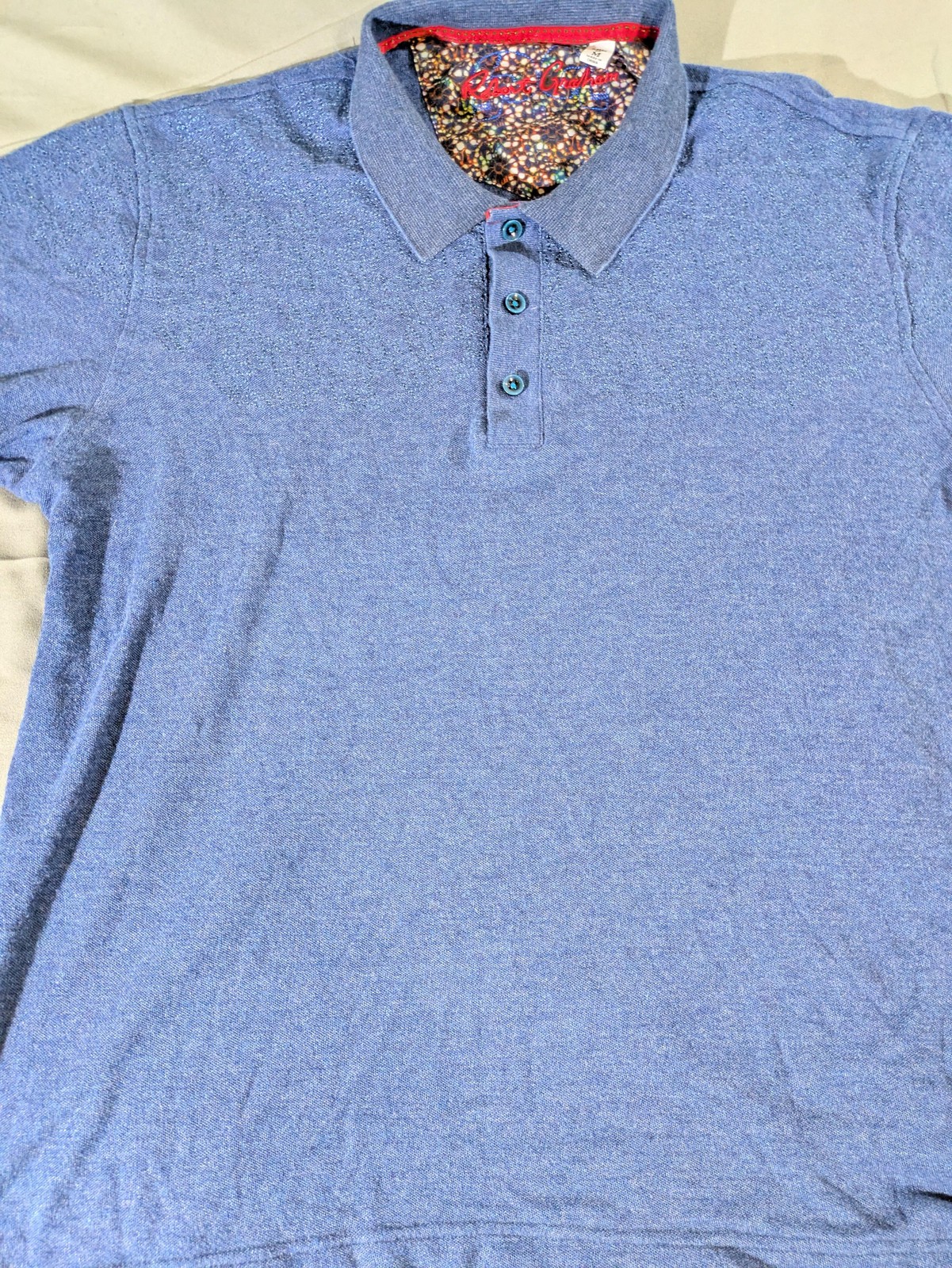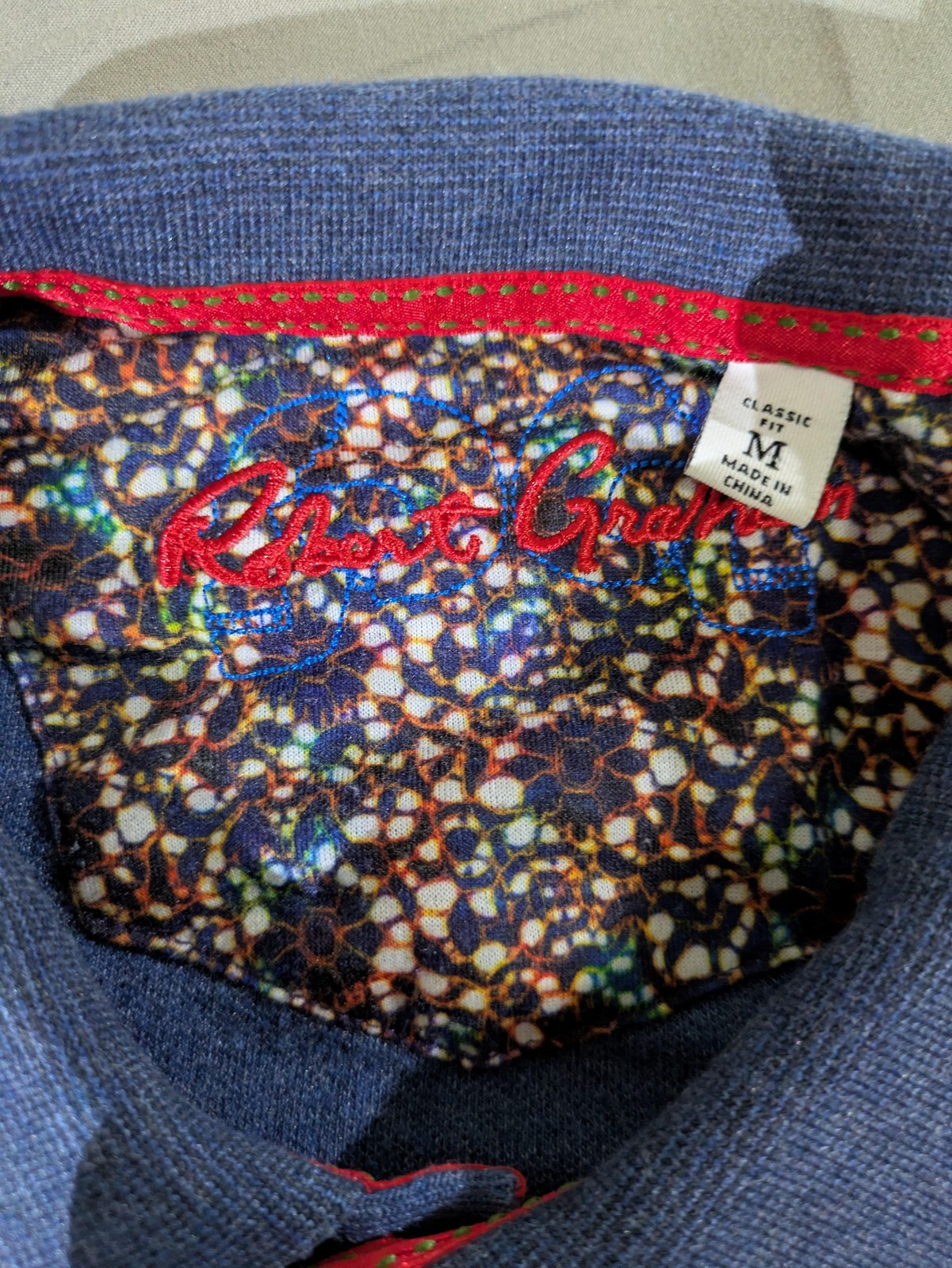 как выглядит Robert Graham Polo Shirt Mens Medium Blue Classic Fit Modal Knit Embroidered фото