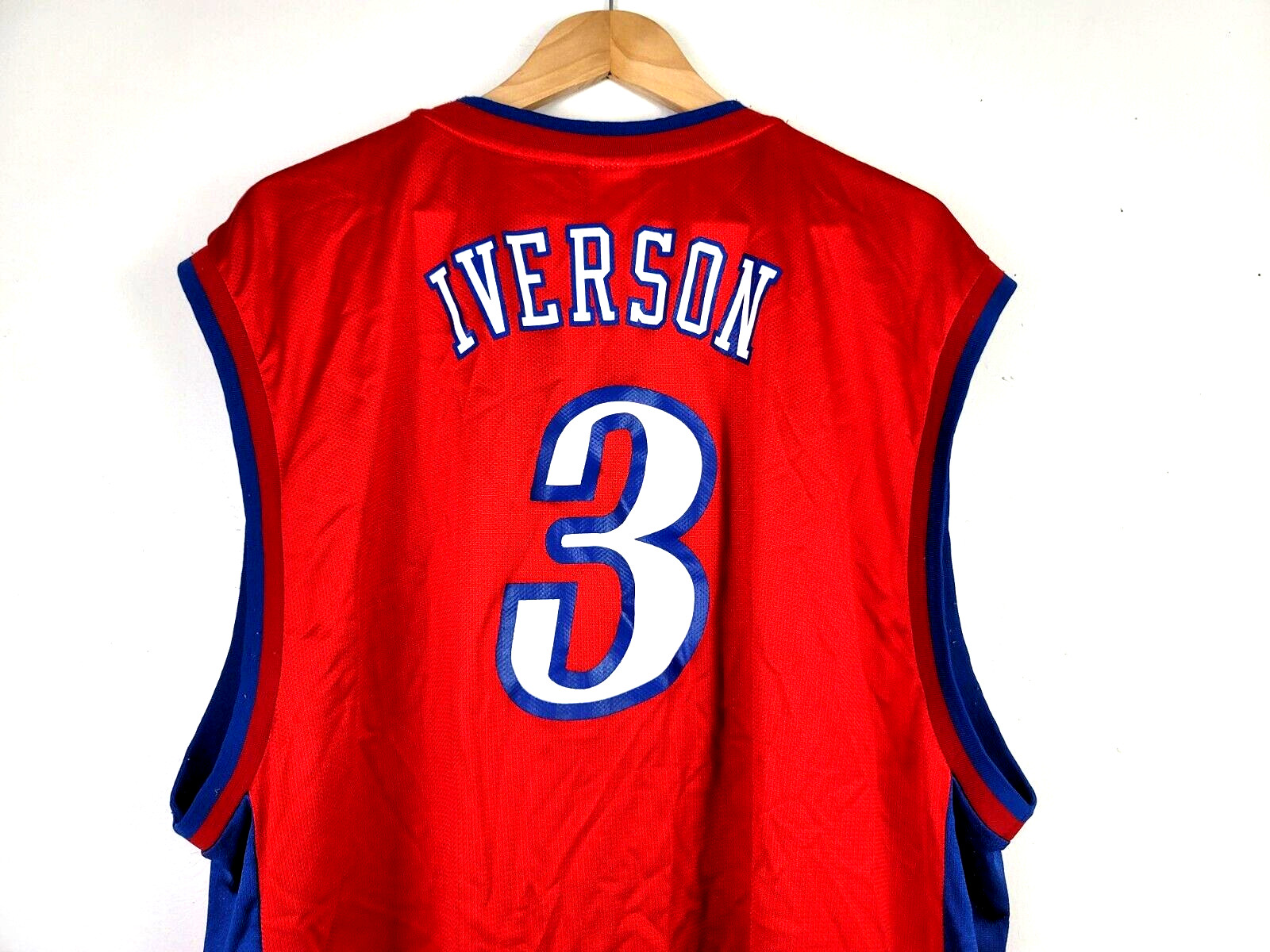 Allen IVERSON 3 Philadelphia 76ers Jersey 2XL Red Reebok 100 Polyester NBA