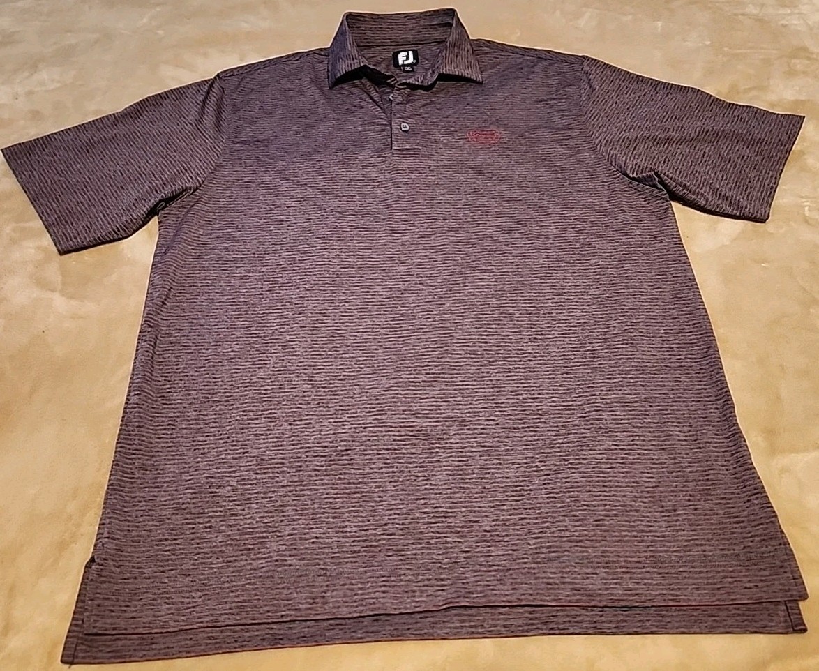 NEW Footjoy mens polo golf shirt LARGE Red Gray stripe short sleeve