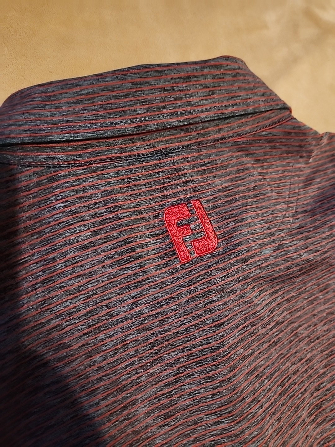 как выглядит NEW Footjoy mens polo golf shirt LARGE Red Gray stripe short sleeve фото