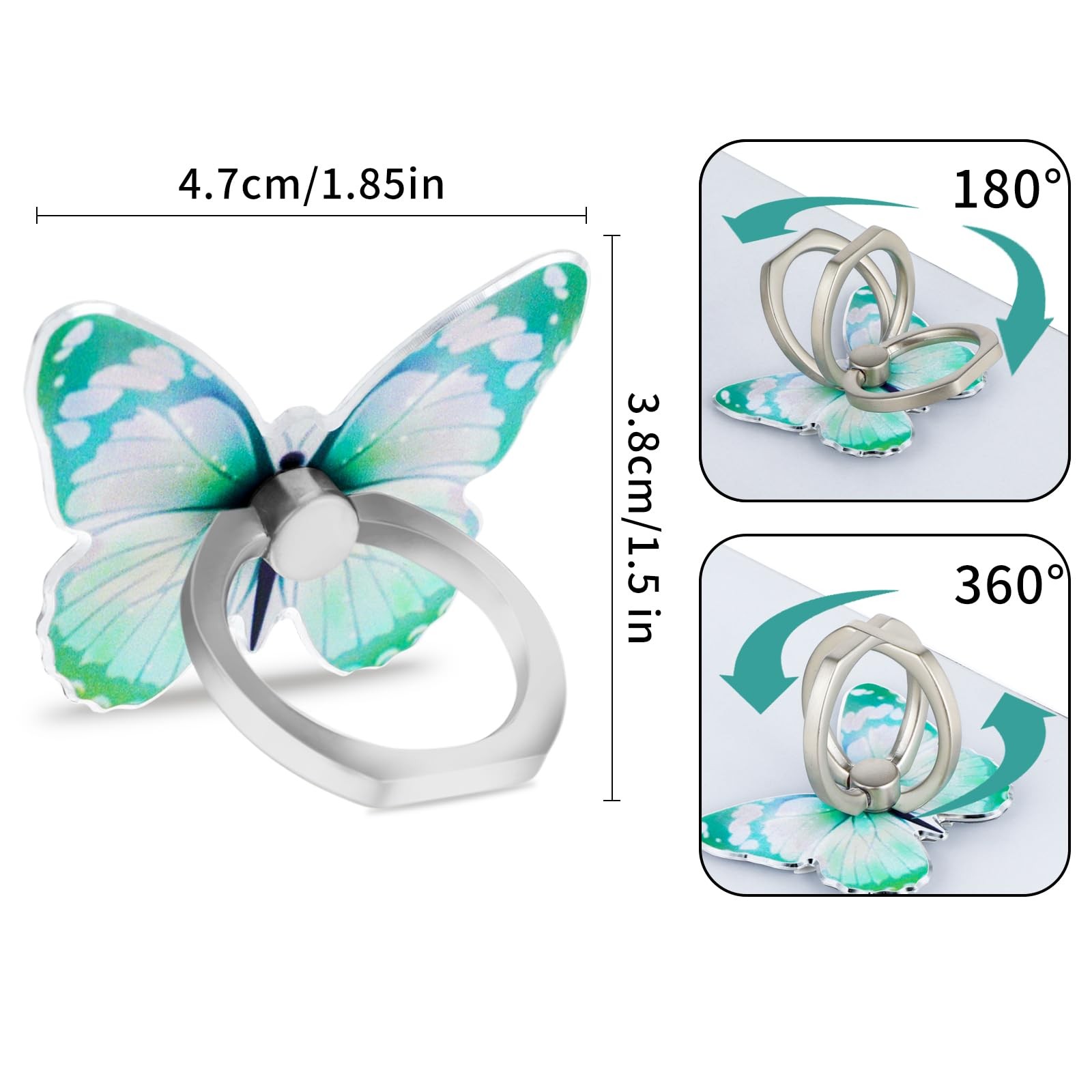 4 PCS Butterfly Cell Phone Ring Holder Zinc Alloy Cute 360 Rotation Metal Fin...