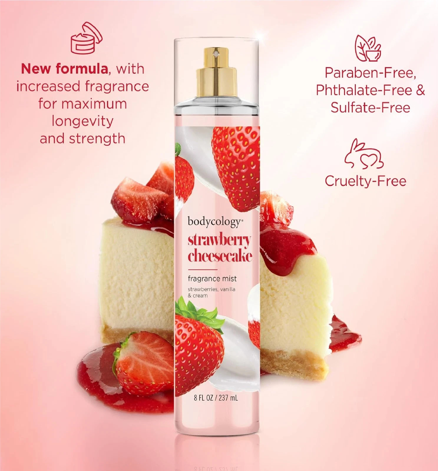 Bodycology Long-Lasting Fragrance Body Mist, Strawberry Cheesecake, 8 fl oz