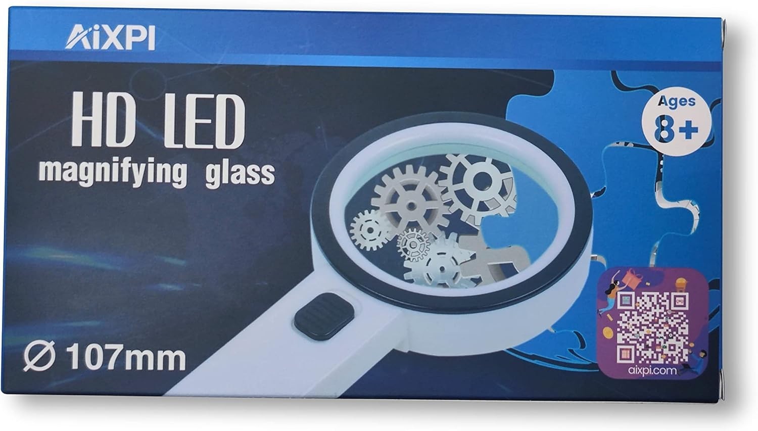 30X Handheld Magnifying Glass with 12 LED Lights for Easy Reading Inspections