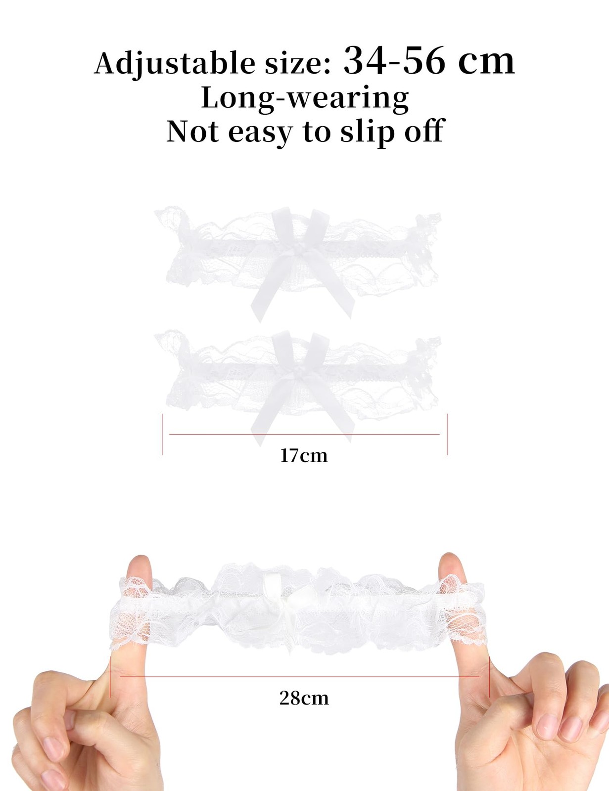 Lace Wedding Garter Set for Bride, Elastic Bridal Leg Garter, Thigh Bow, Ling...