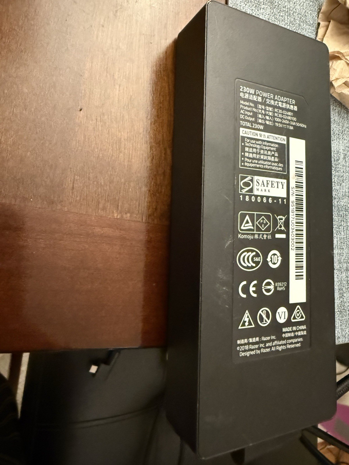 как выглядит Used OEM 230W RC30-024801 AC Adapter Charger for Razer Blade 14" 15" 17" RTX фото