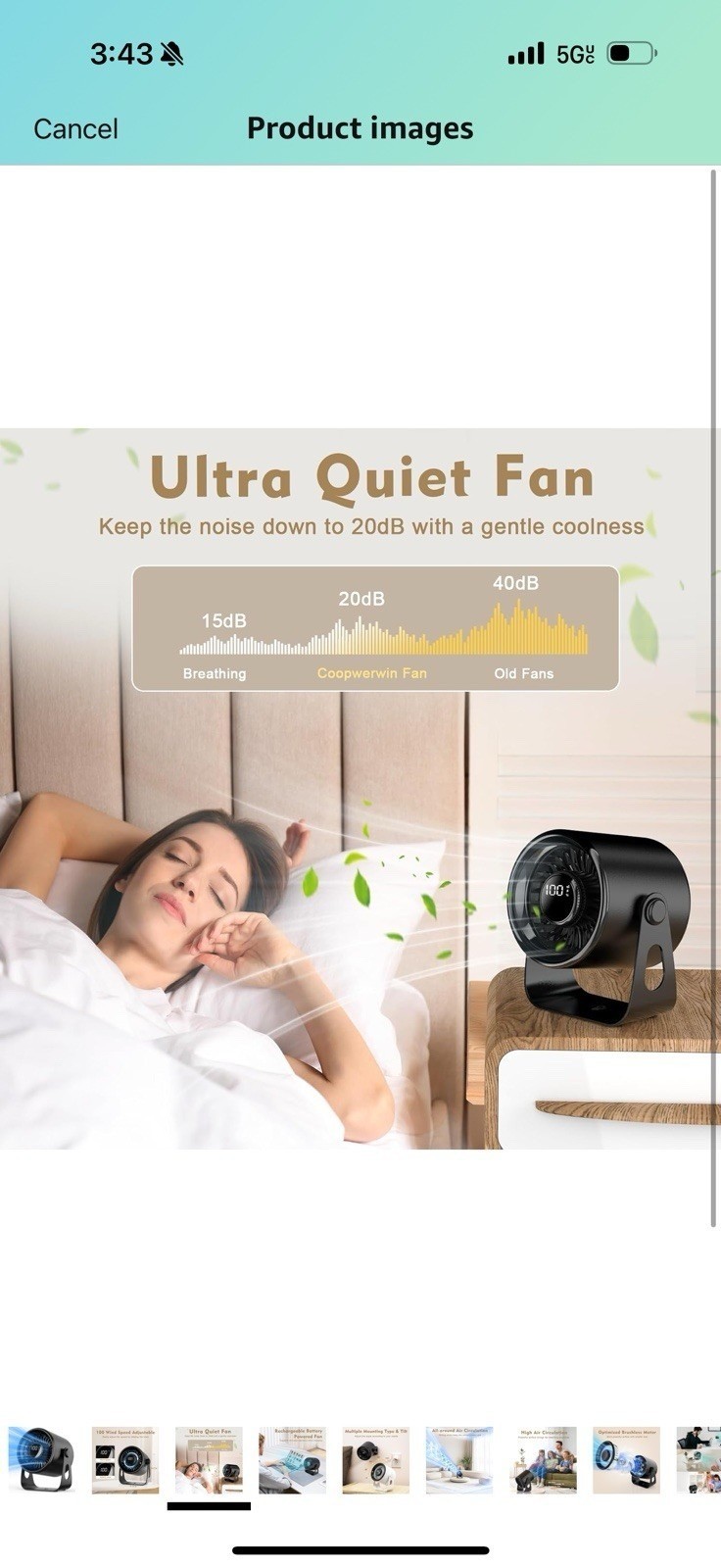 как выглядит Desk Fans Small Quiet, 100 Speeds Rechargeable Fan Portable, 4000mAh Battery фото