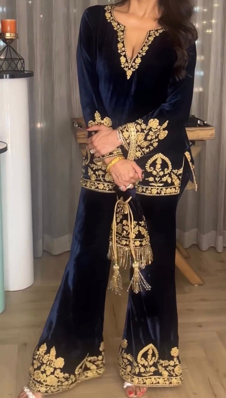 как выглядит FESTIVAL BLUE KURTI PLAZZO SET VELVET SUIT PARTYWEAR KURTA PANT SUIT ETHNIC WEAR фото