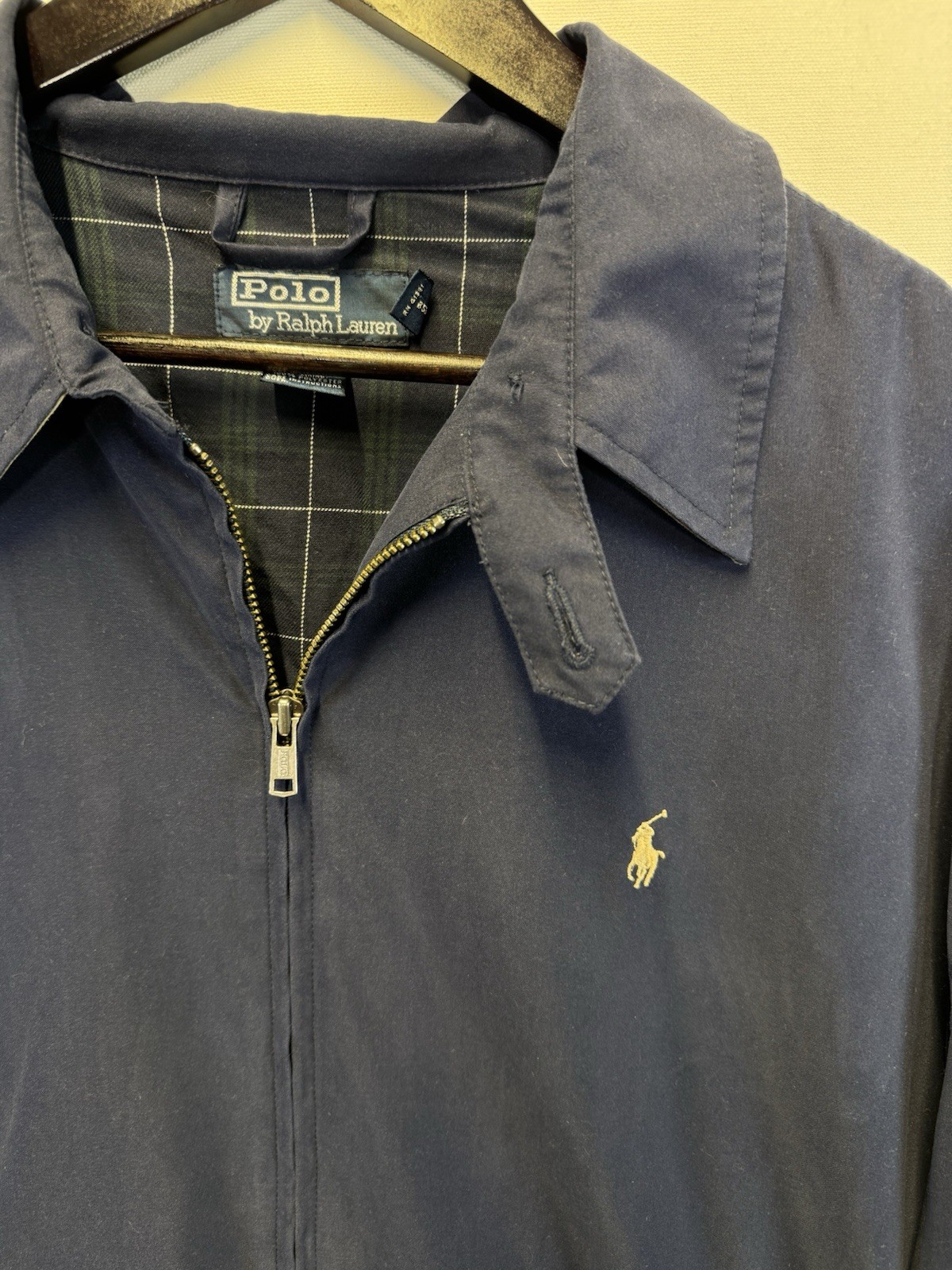 Vintage 90's Polo Ralph Lauren Cotton Plaid Lined Harrington Jacket Blue Size XL