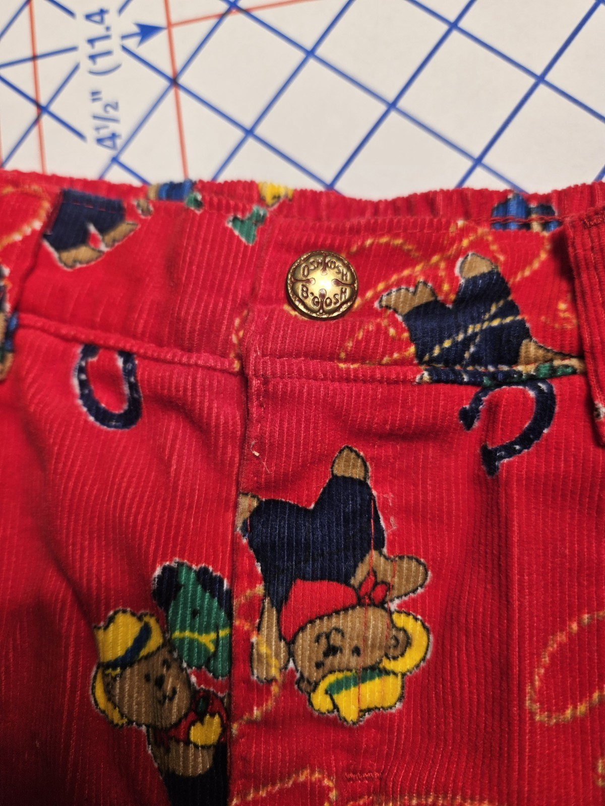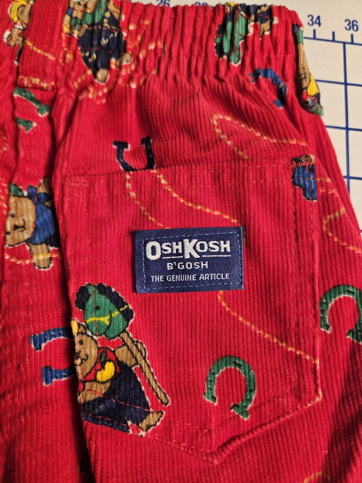 Vintage Oskosh B'gosh Kids Toddler Red Corduroy Pants 4T Bear Cowboy Horseshoe