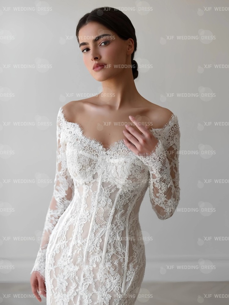 Long Sleeve Mermaid Lace Wedding Dresses with Detachable Tail