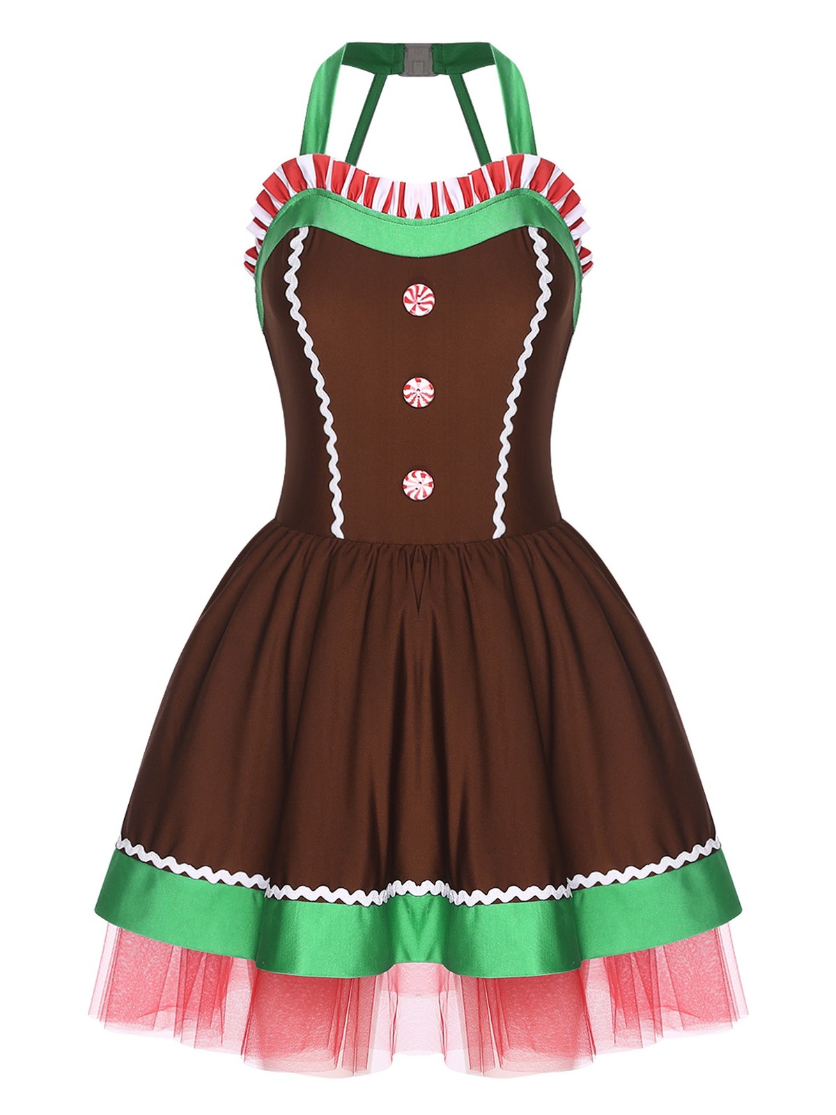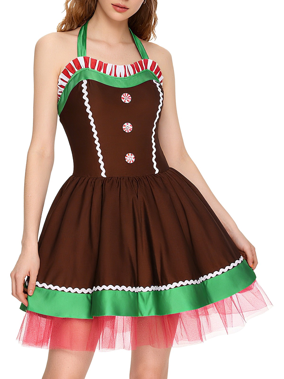 как выглядит Womens Gingerbread Costume Stage Xmas Sleeveless Christmas Masquerade Adult фото