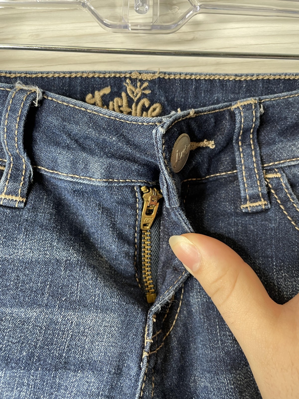 как выглядит Justice Jeans Girls 8 Dark Wash Simply Low Super Skinny Rhinestone Embellished фото