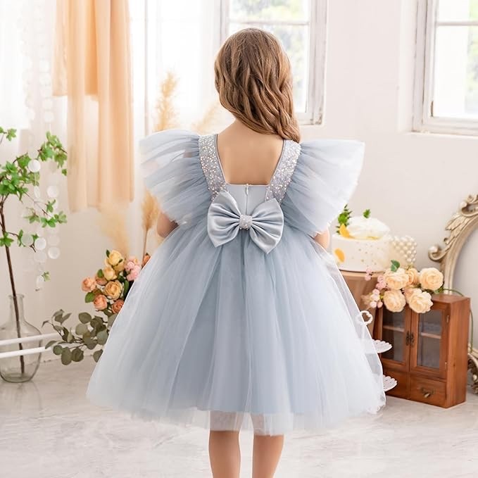 NNJXD Princess Girl Flower Dress Tulle Wedding Party Pageant Gown 5-6Yrs Old