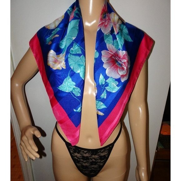 как выглядит Vintage Blue Pink Extra Large Floral Scarf neck scarve pinup retro rockabilly фото