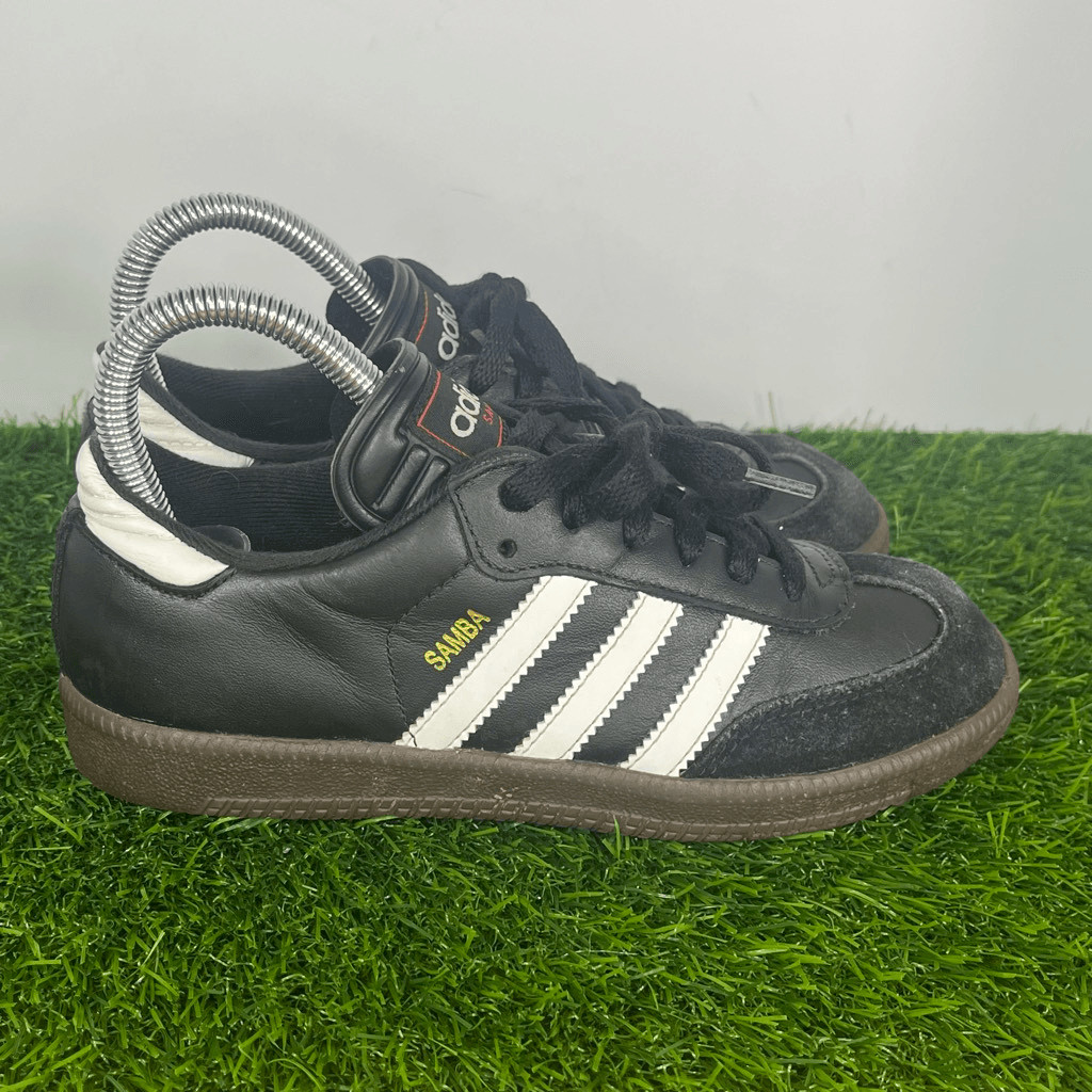 как выглядит Adidas Samba Classic kid size 3 Black White Gum Athletic Leather Shoes Sneaker фото