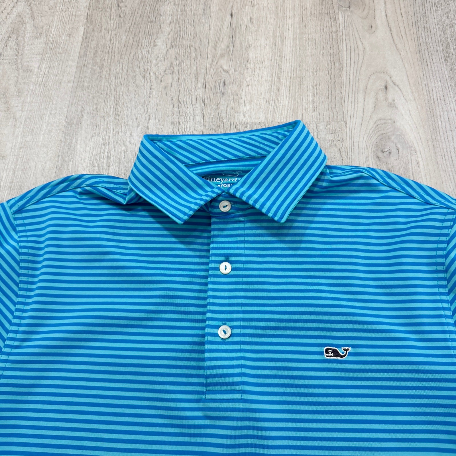 как выглядит Vineyard Vines Performance Polo Shirt Mens Medium Blue Striped Golf Golfing фото
