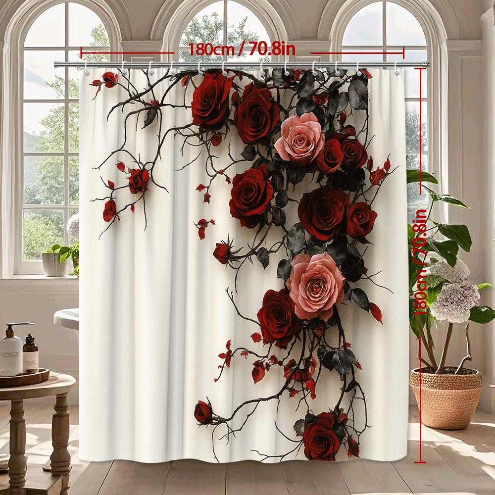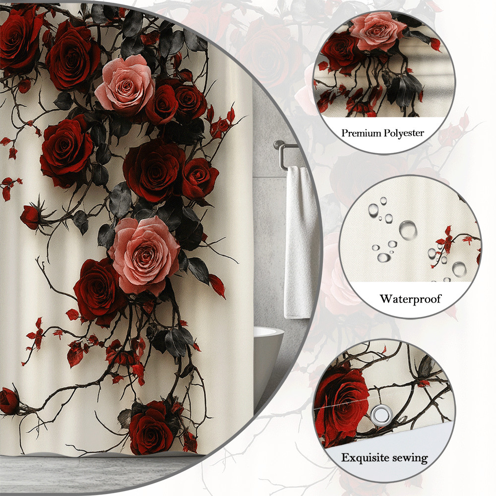 Elegant Floral Shower Curtain with Red and Pink Roses