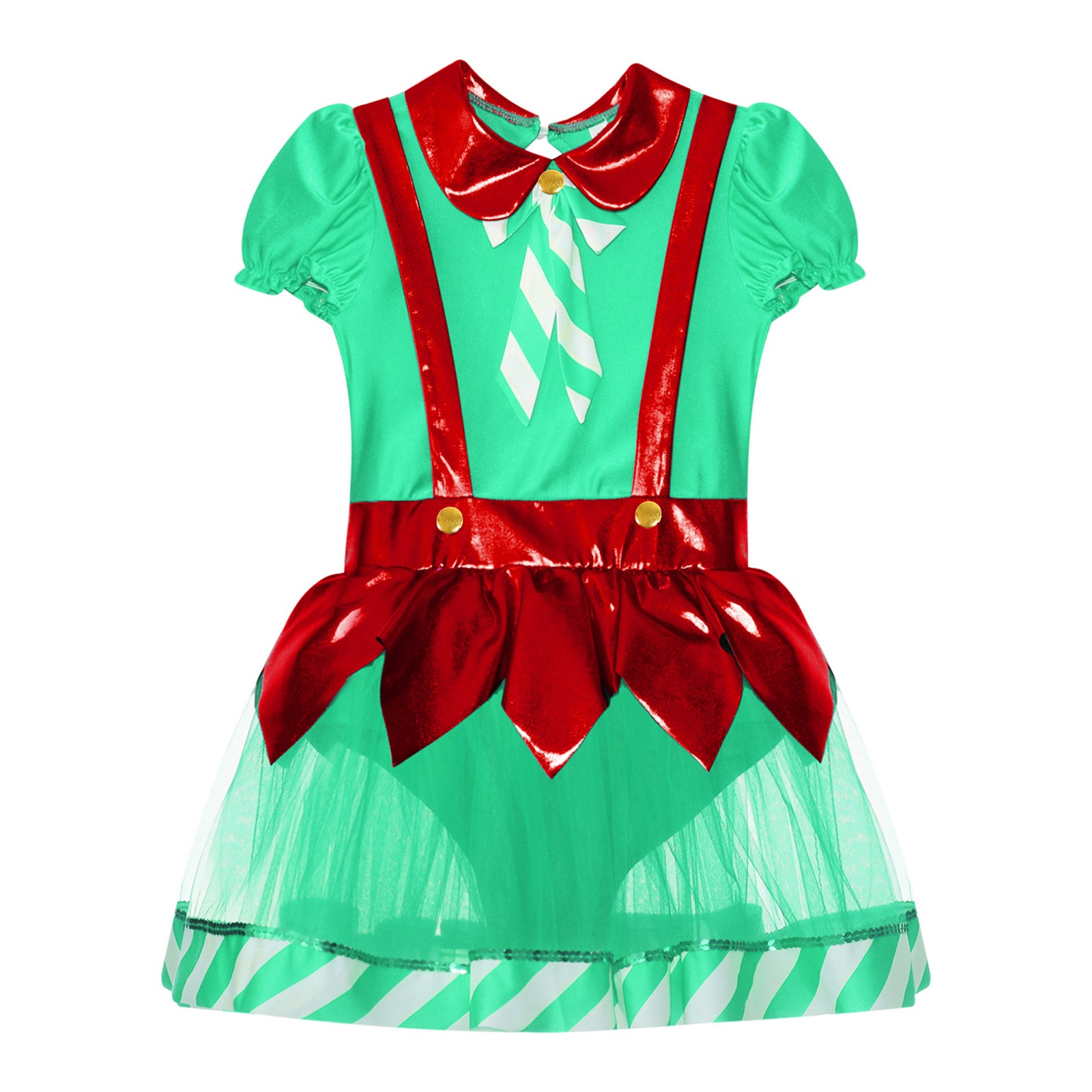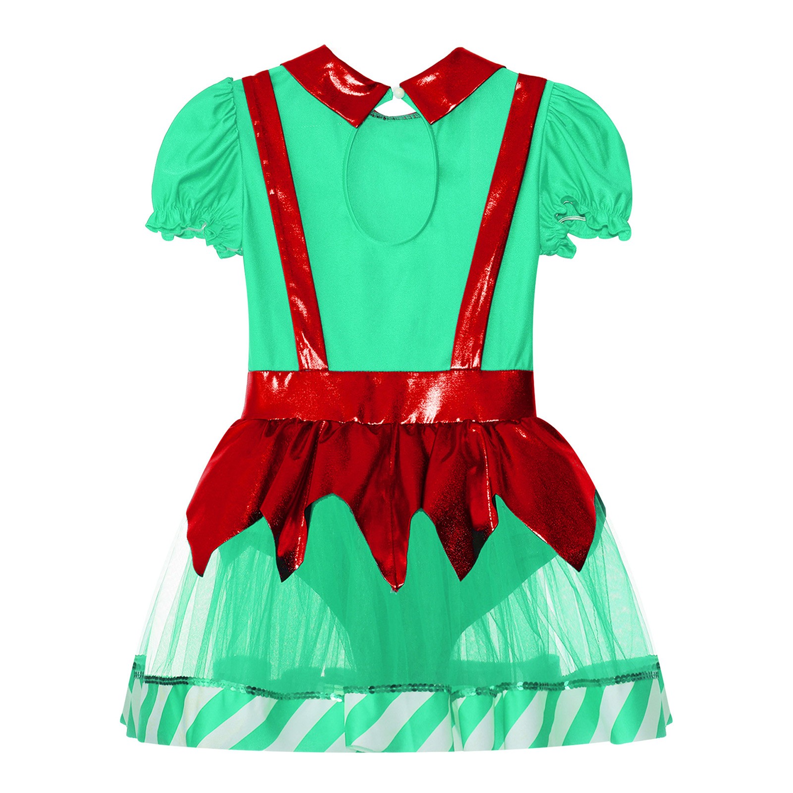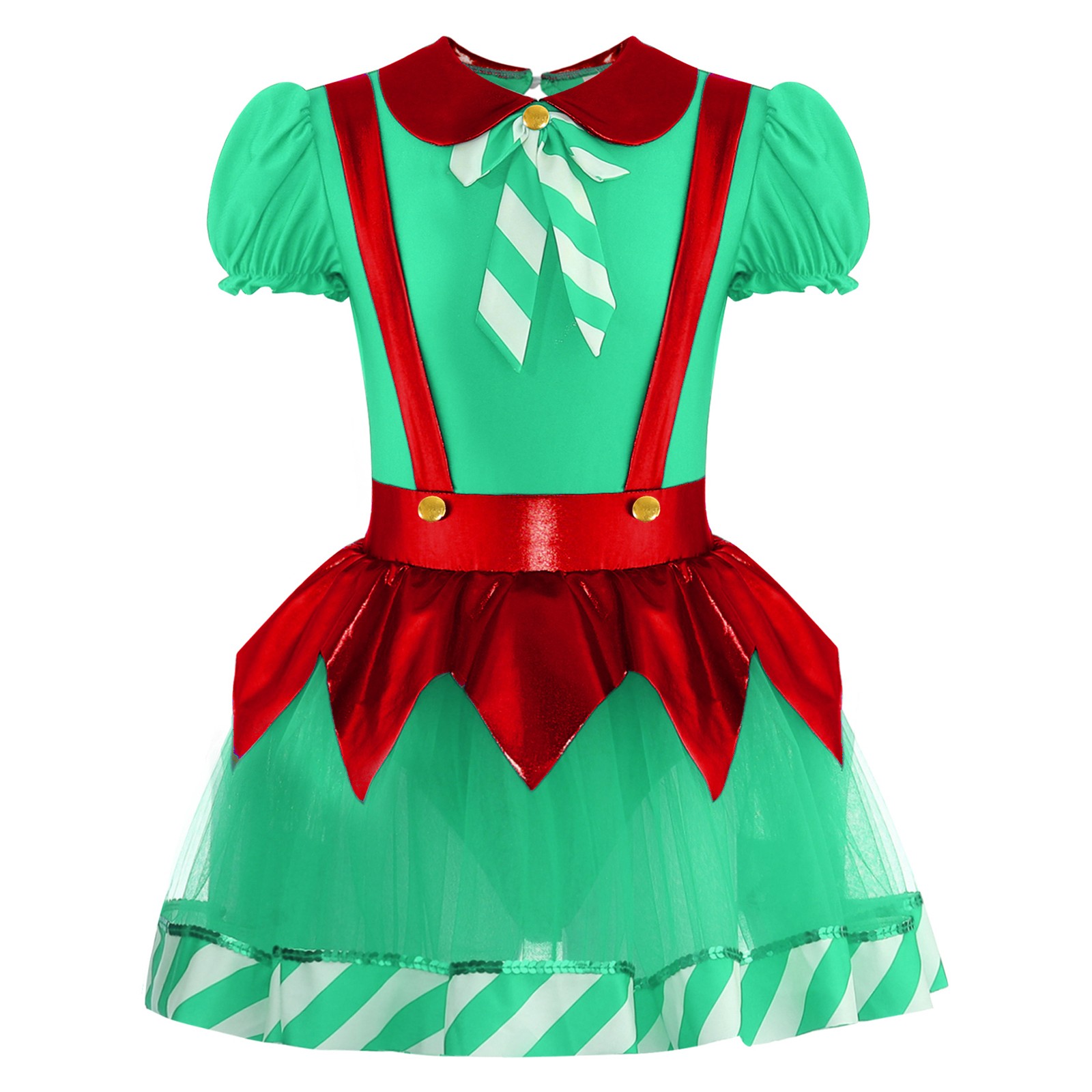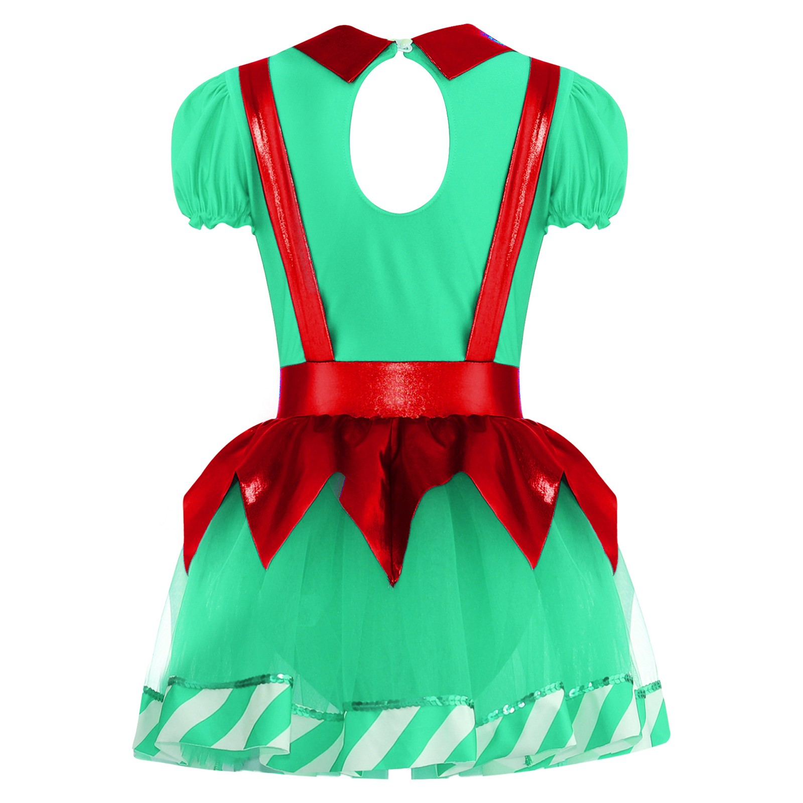 как выглядит Girls Christmas Dance Tutu Dress Puff Sleeve Bow Stripes Figure Skating Leotard фото