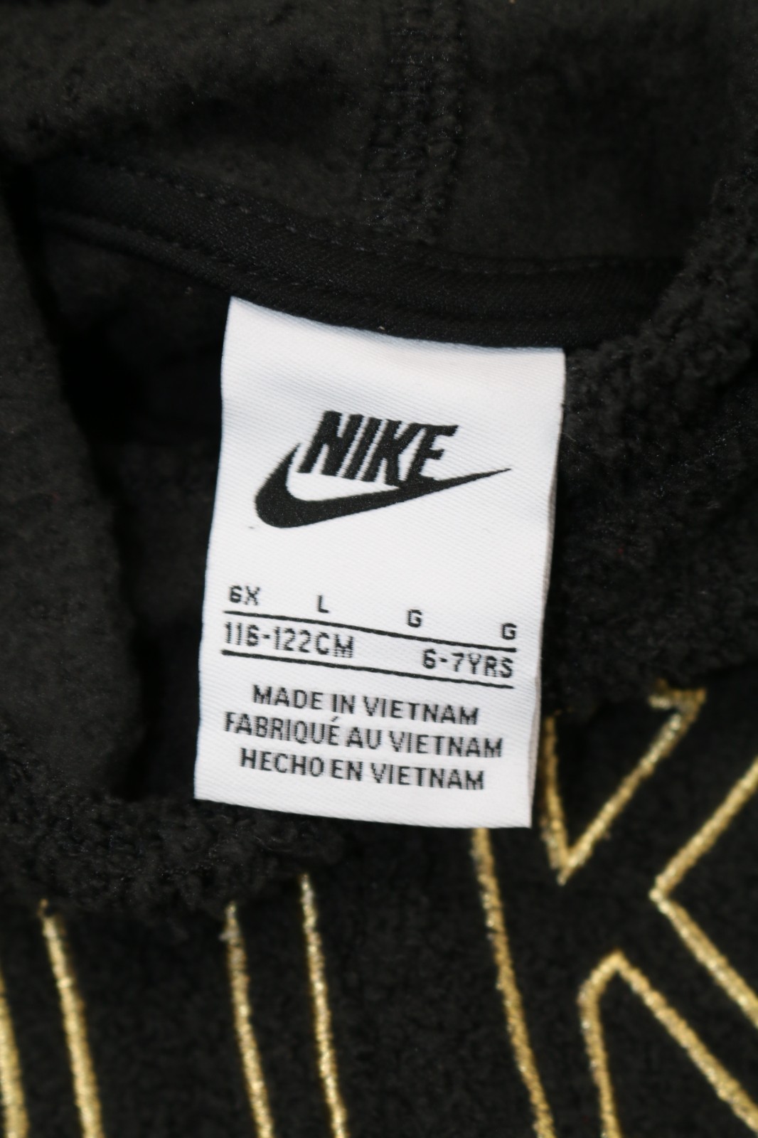 как выглядит Nike Youth 2PC Set 6X Pile Fleece Hoodie Sweatpants Set Black Gold Embroidery фото
