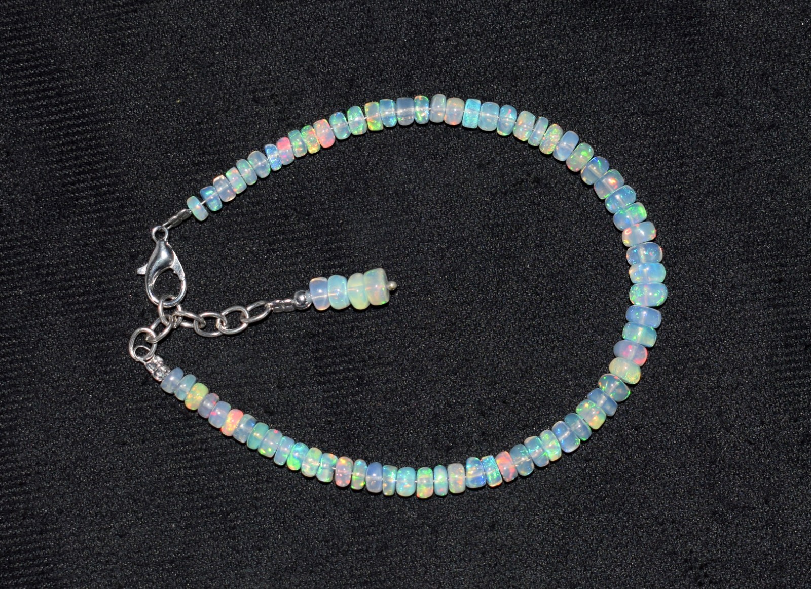 Natural Ethiopian Wello Fire Opal Gemstone Fire Beads 7.5''Bracelet AF0236