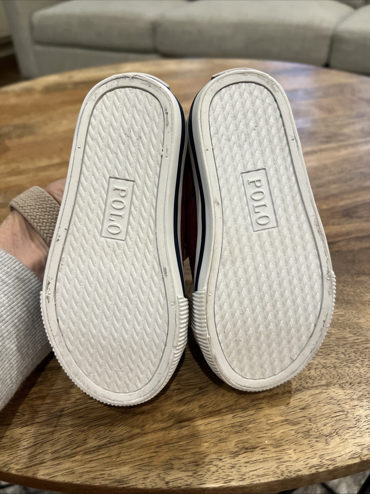 как выглядит Polo Ralph Lauren Youth Shoes Size 8 Burgundy Canvas No Tie Sneakers Nice фото