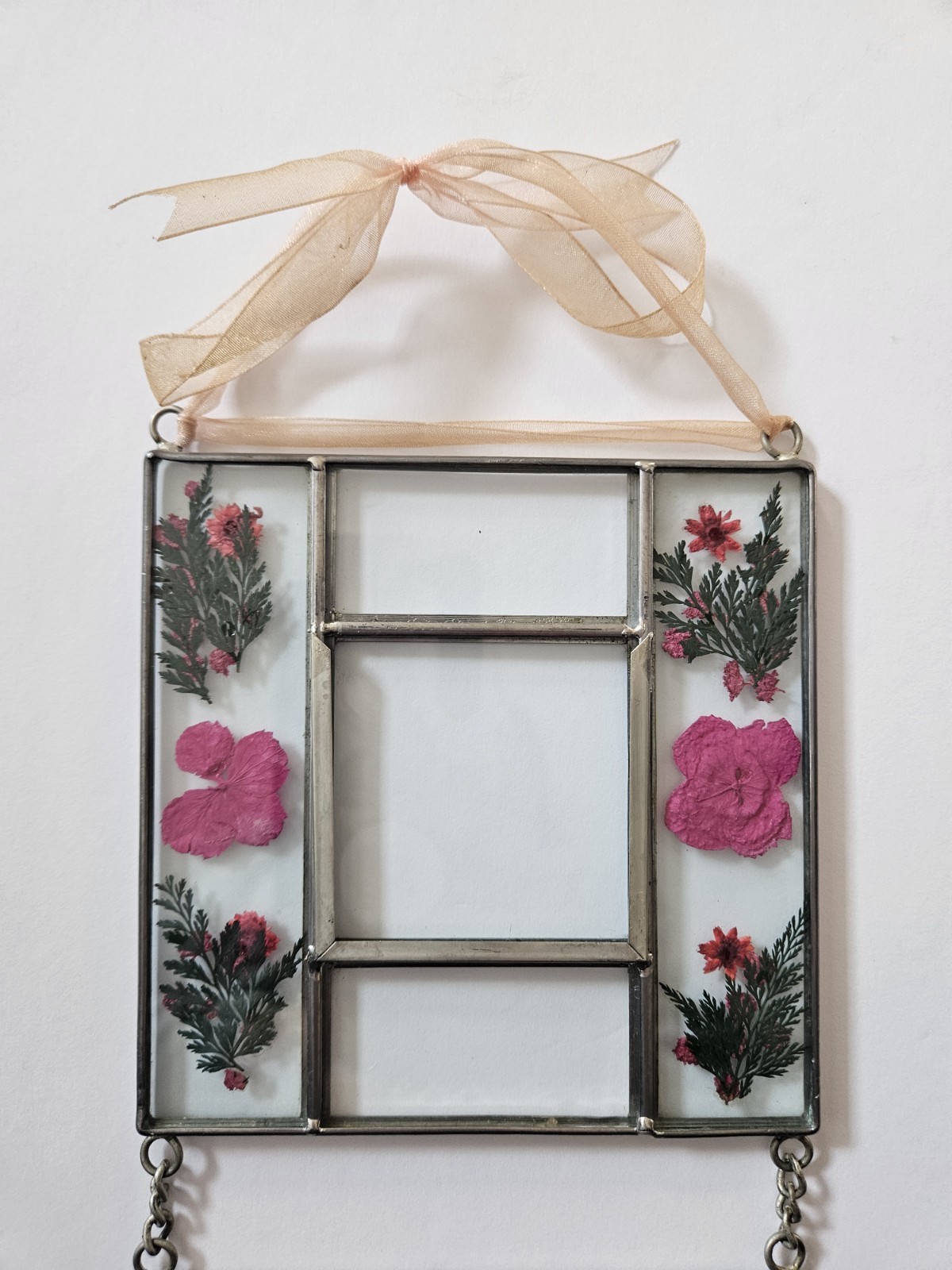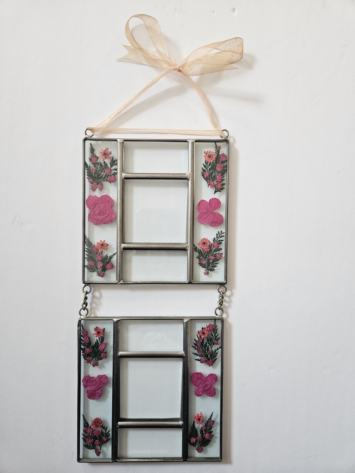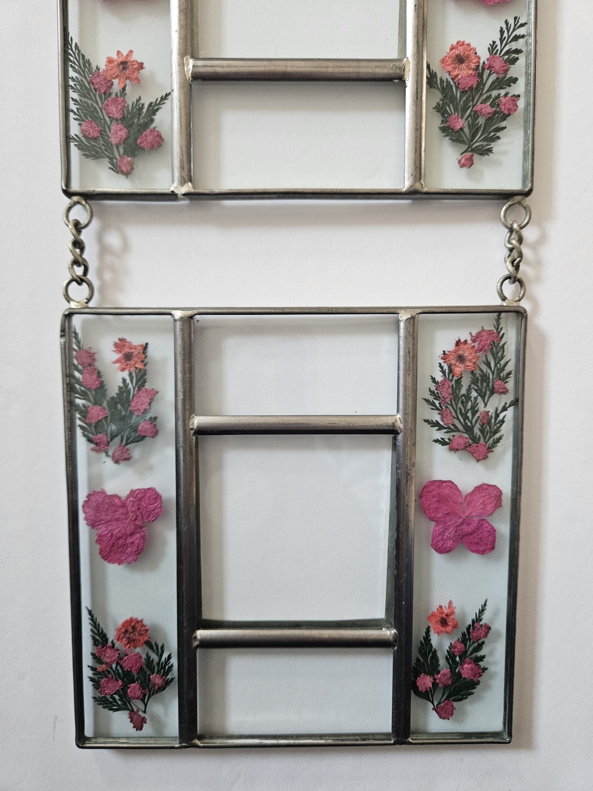 Vintage Pressed Flower Glass Double Wall Hanging Picture Frames. Decorative