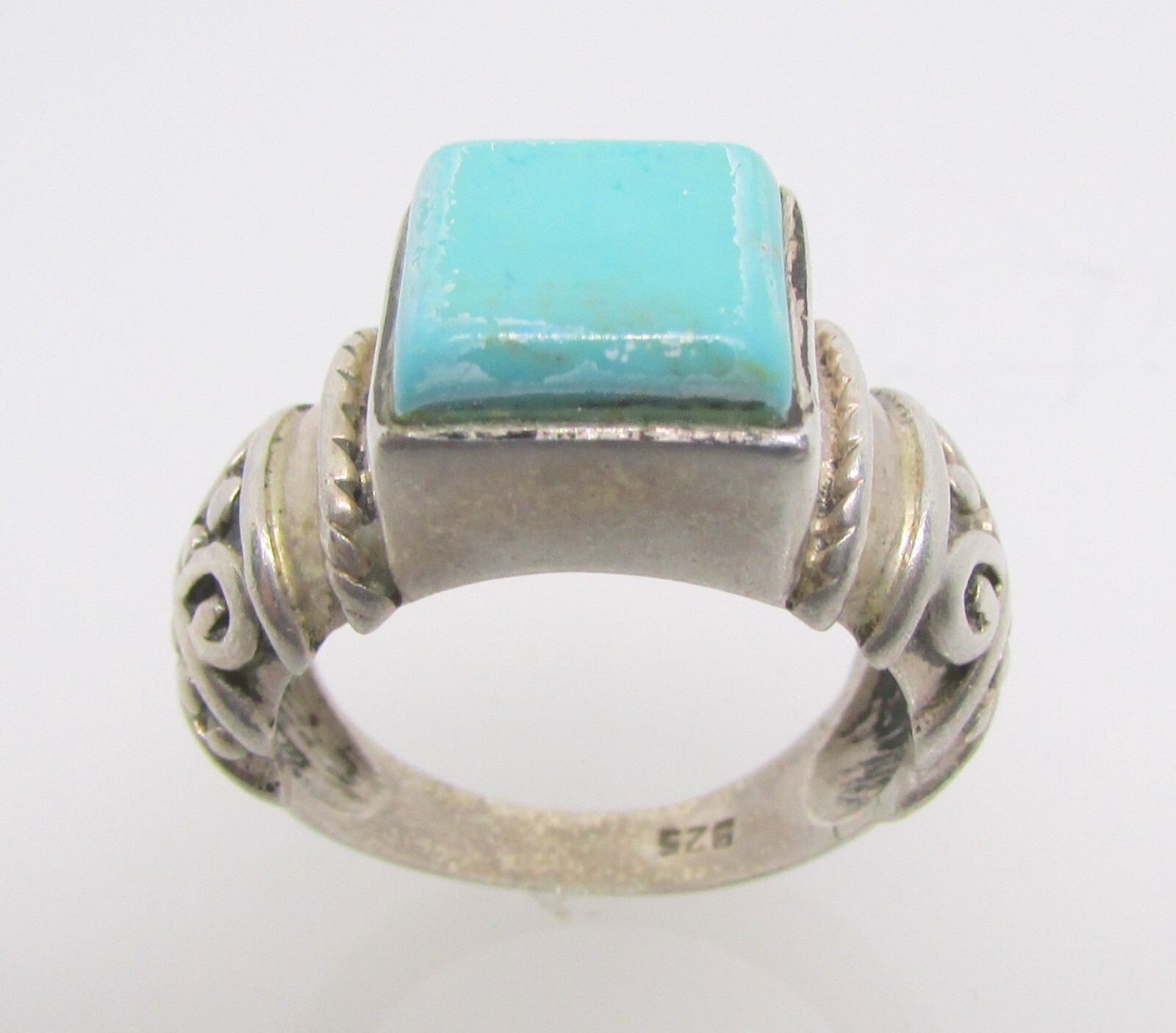 925 STERLING SILVER SQUARE TURQUOISE FILIGREE RING SIZE 7 5.8 G