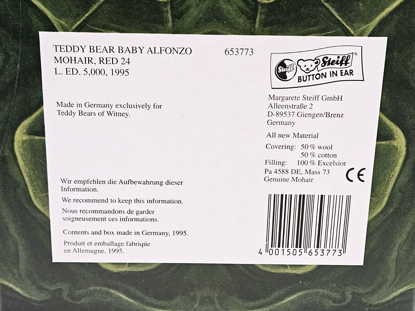 RARE Steiff Baby Alfonzo 1995 Limited Edition 693 Hand-Signed by Ian Pout