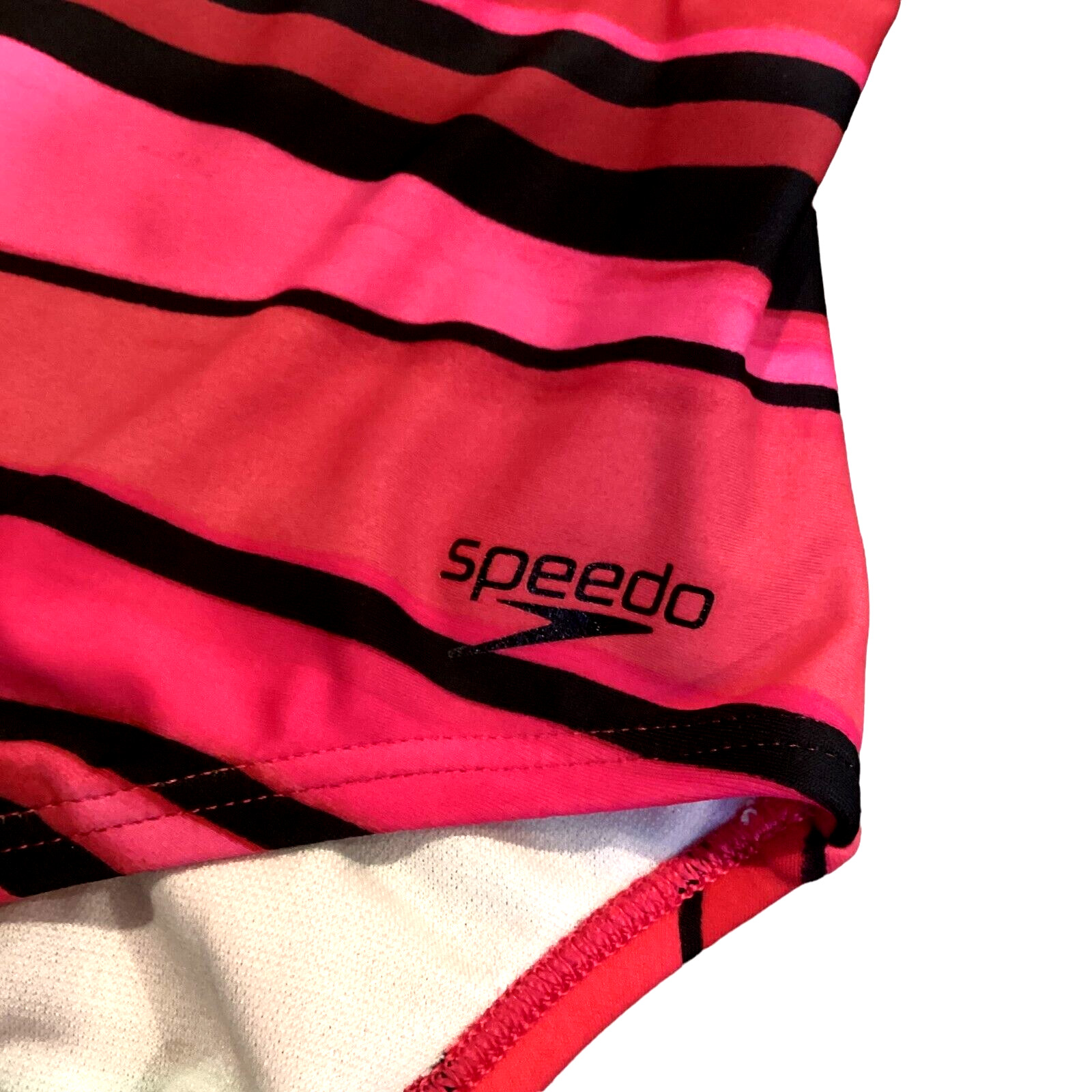 Speedo Striped One-Piece Swimsuit Cross Strap Girls Sz 10 Pink Red Black 170J