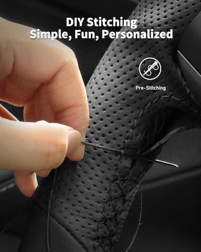 Leather Steering Wheel Cover Lace Up, Genuine Leather Hand Type Z1 Black