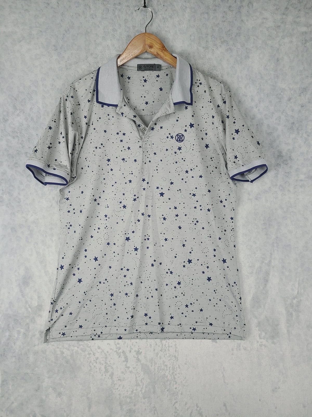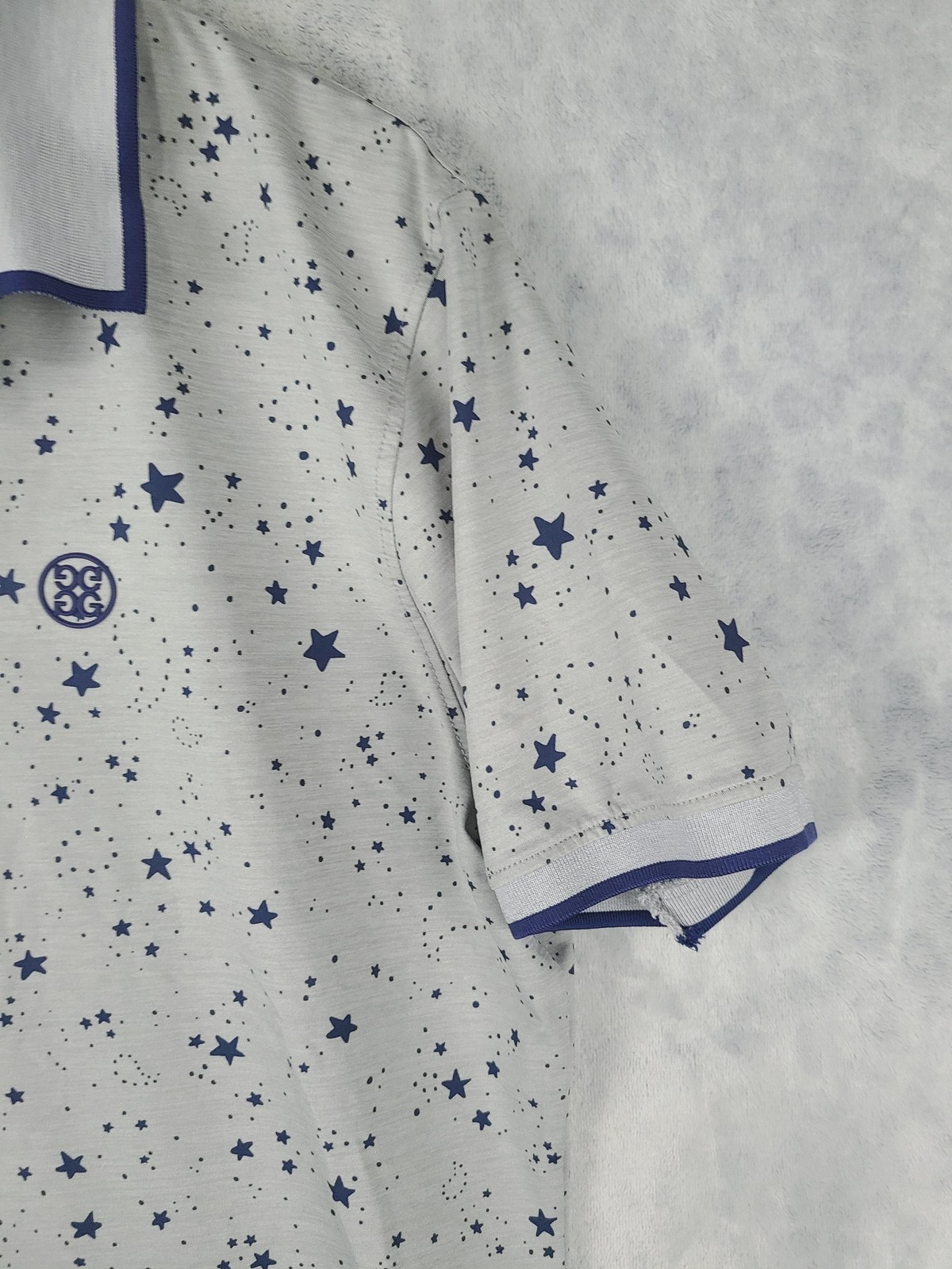 как выглядит G/FORE Shirt Mens Medium Gray Star Print Golf Performance Short Sleeve Polo фото