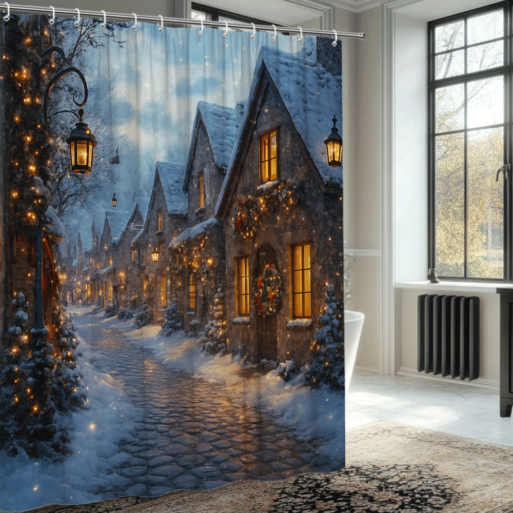 как выглядит Christmas Shower Curtain - Cozy Winter Village Scene фото