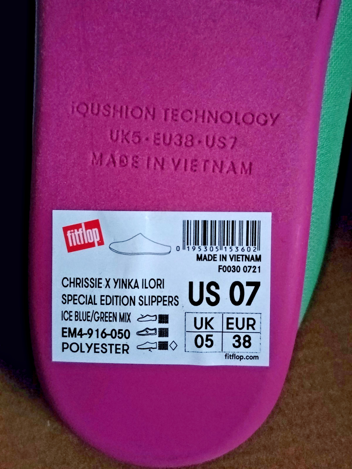как выглядит Womens FitFlop Blue/Green Chrissie x Yinka Ilori Special edition Slippers US7 фото