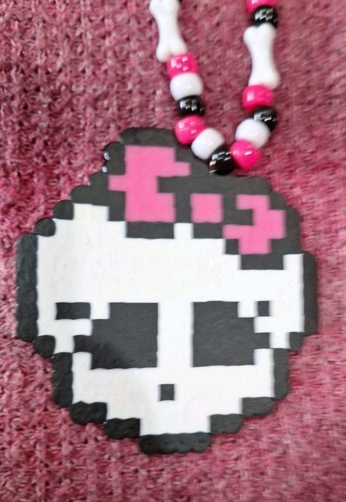Kandi Perler Pony Beads MONSTER HIGH 15.5 NECKLACE Rave Scene Retro Skull-NEW