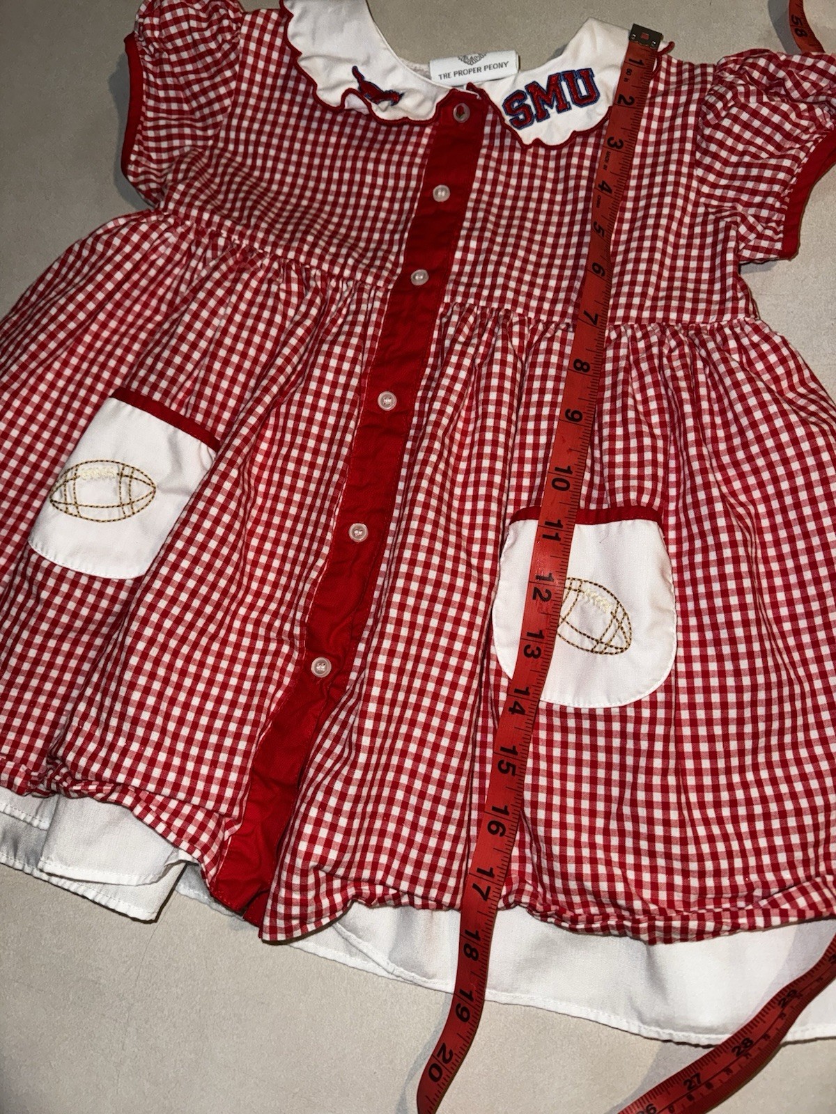 The Proper Peony SMU Mustangs Kids Gingham Dress 3T Red White Embroidered