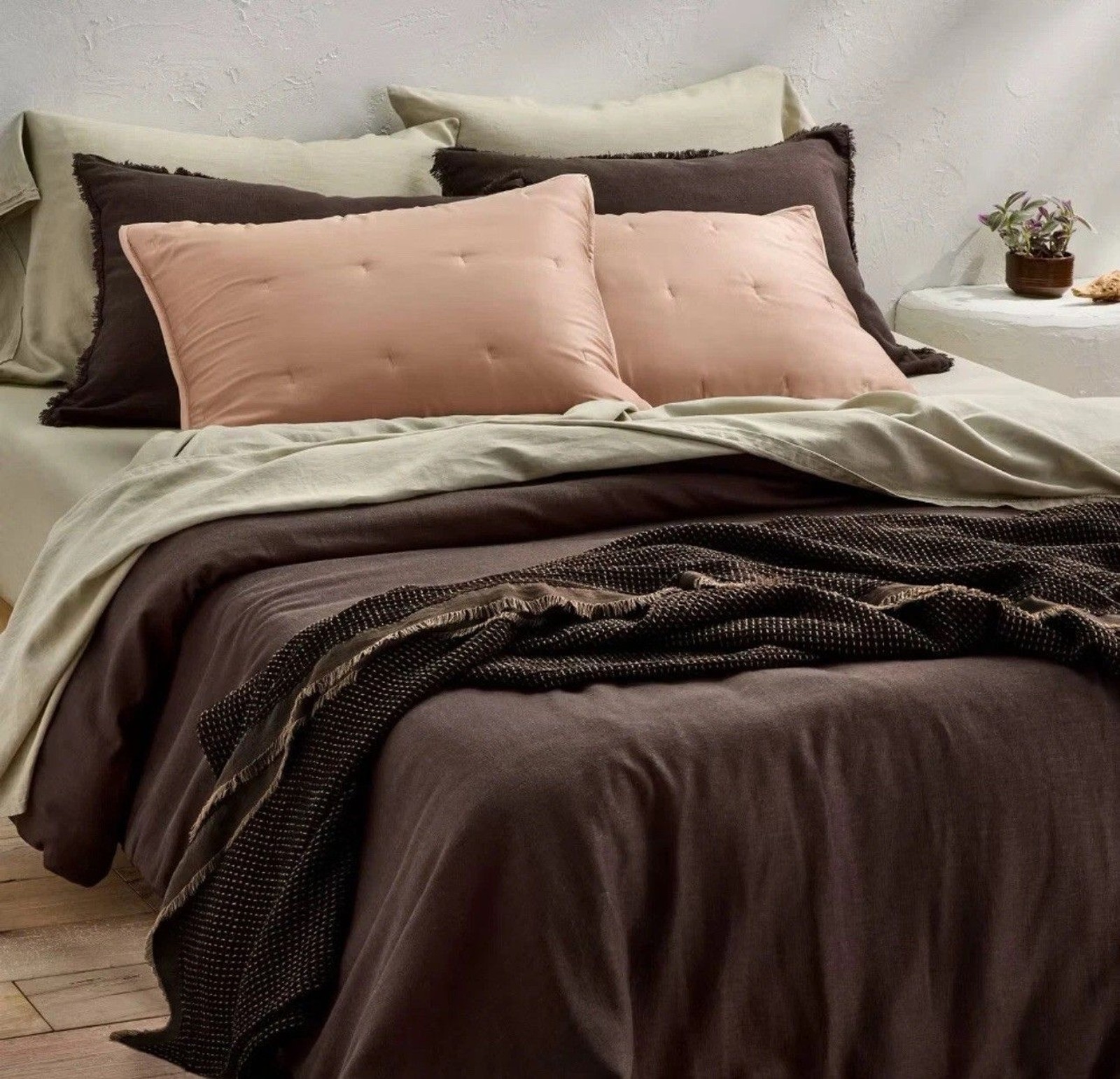 как выглядит SET- King Plus Textured Waffle Coverlet And Shams - Dark Fig - Casaluna NEW фото
