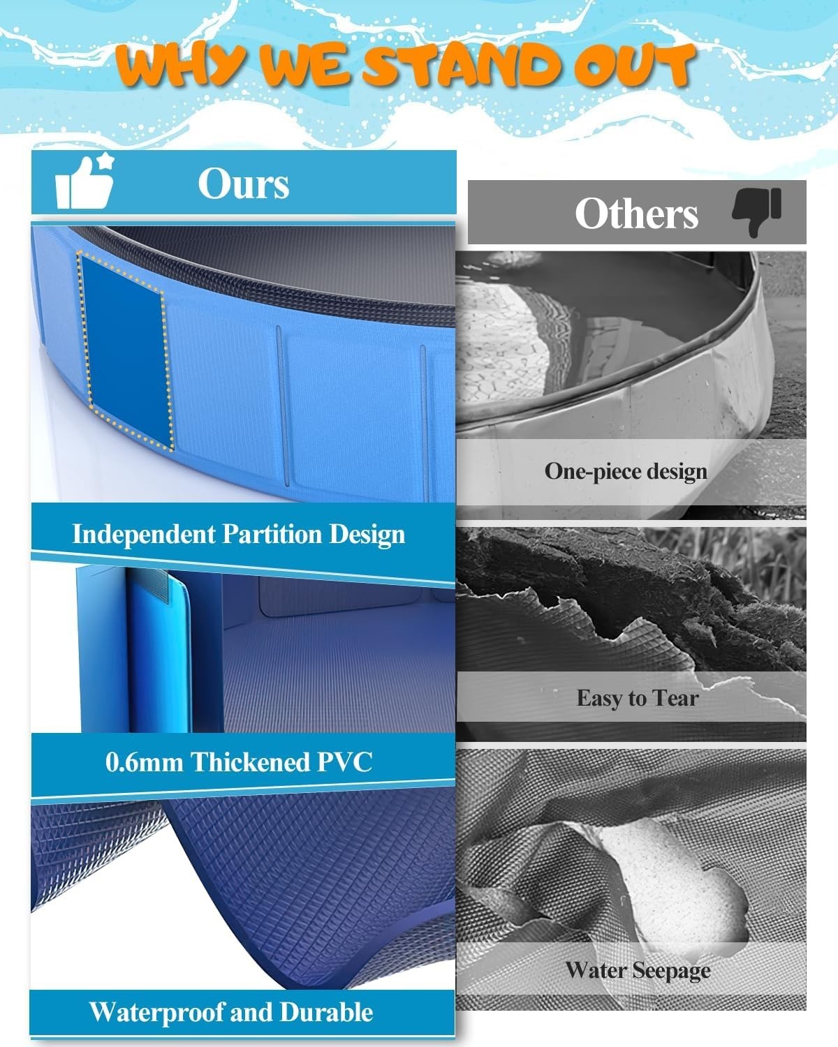 97x16'' Large Foldable Dog Pool Kiddie Pool Thickened, Collapsible Pet Bathin..