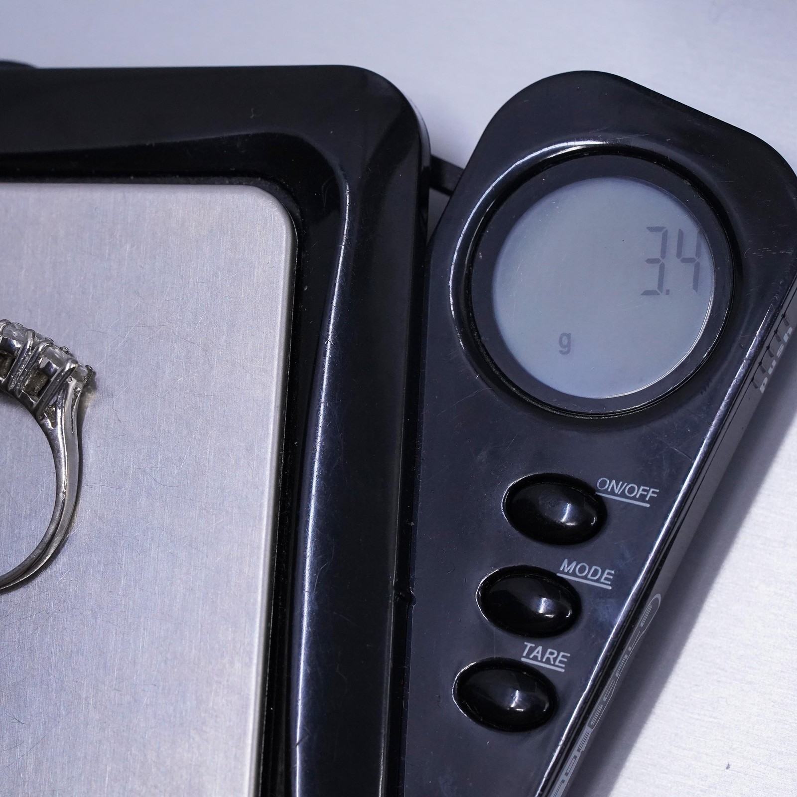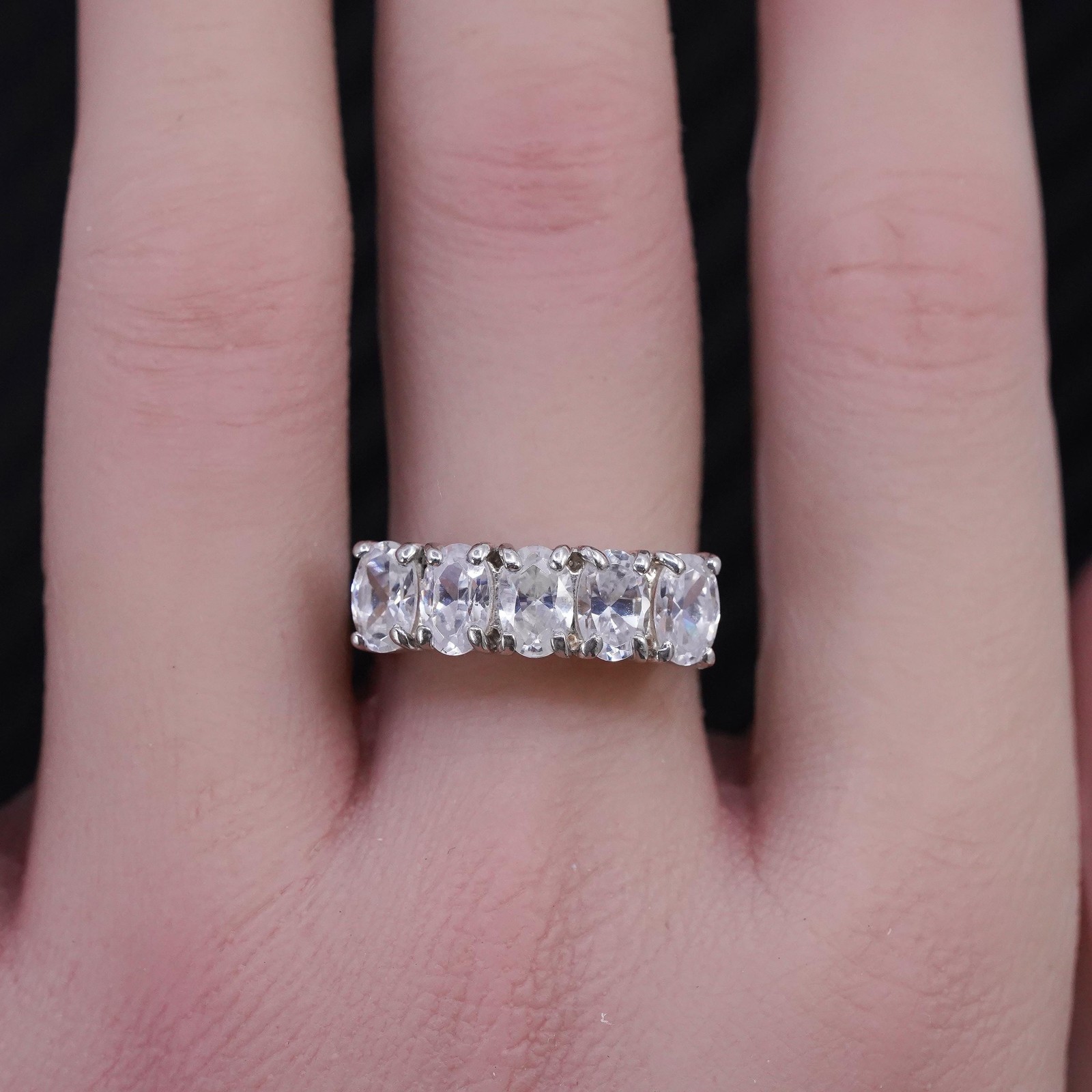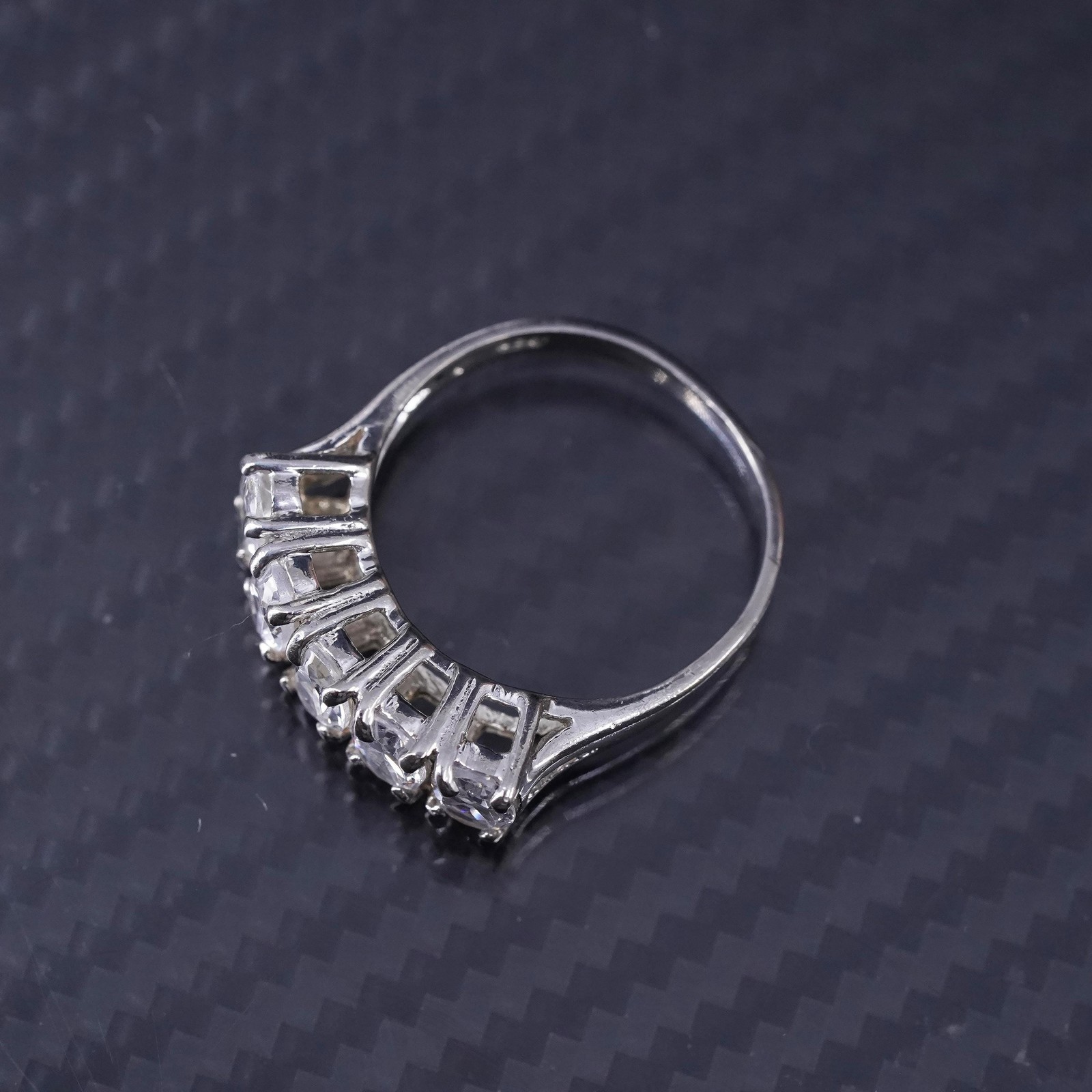 Size 7.25, vintage sterling silver 925 statement band ring with cluster cz