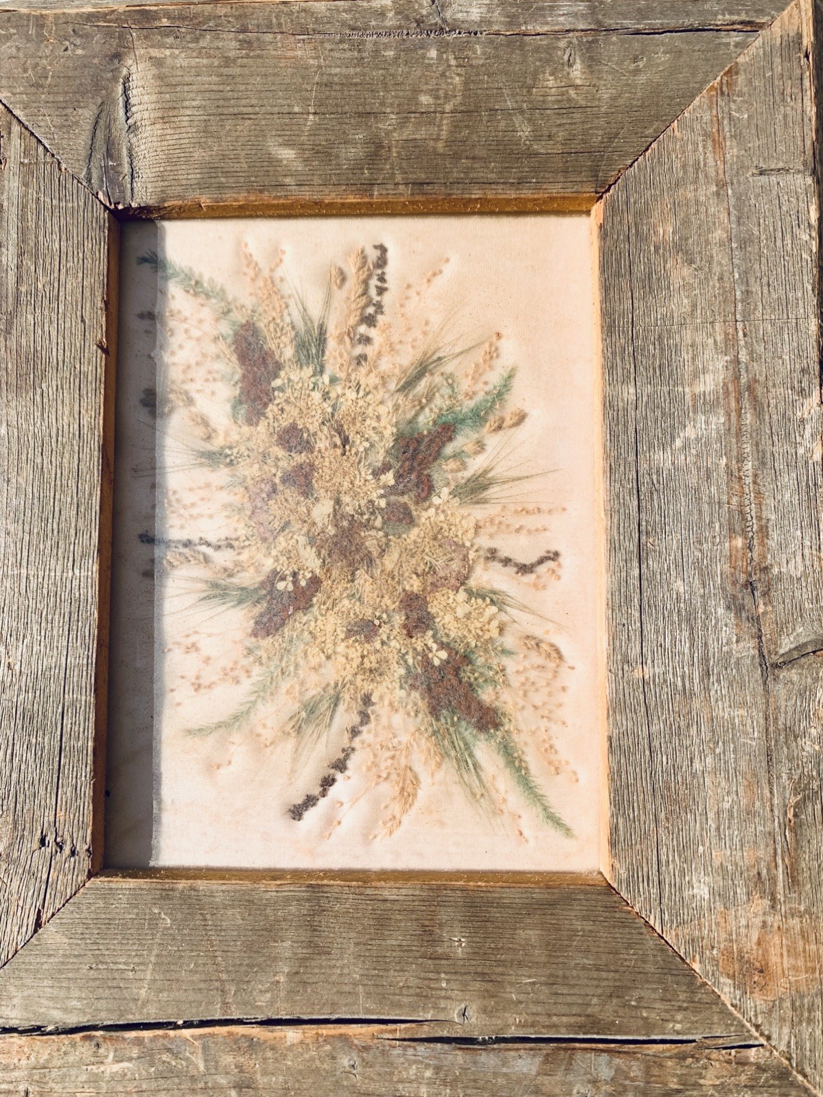 Vintage Pressed Flower Wall Creation Decor Wood Frame Signed Rustic Farm style.