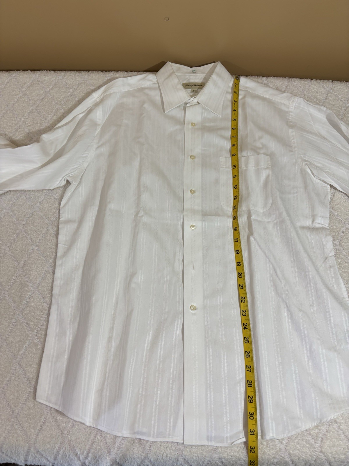 как выглядит Tommy Bahama White Striped Button Up Dress Shirt Front Pocket Size 16.5 32-33 фото