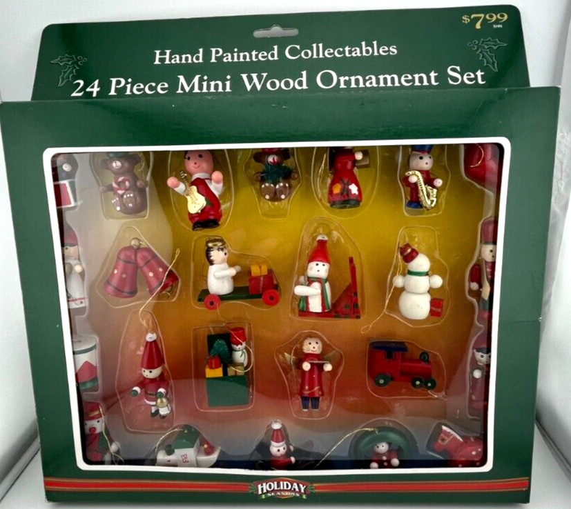 • 24 Mini Christmas Tree Ornaments, Hand Painted Old World Style, New Open Box
